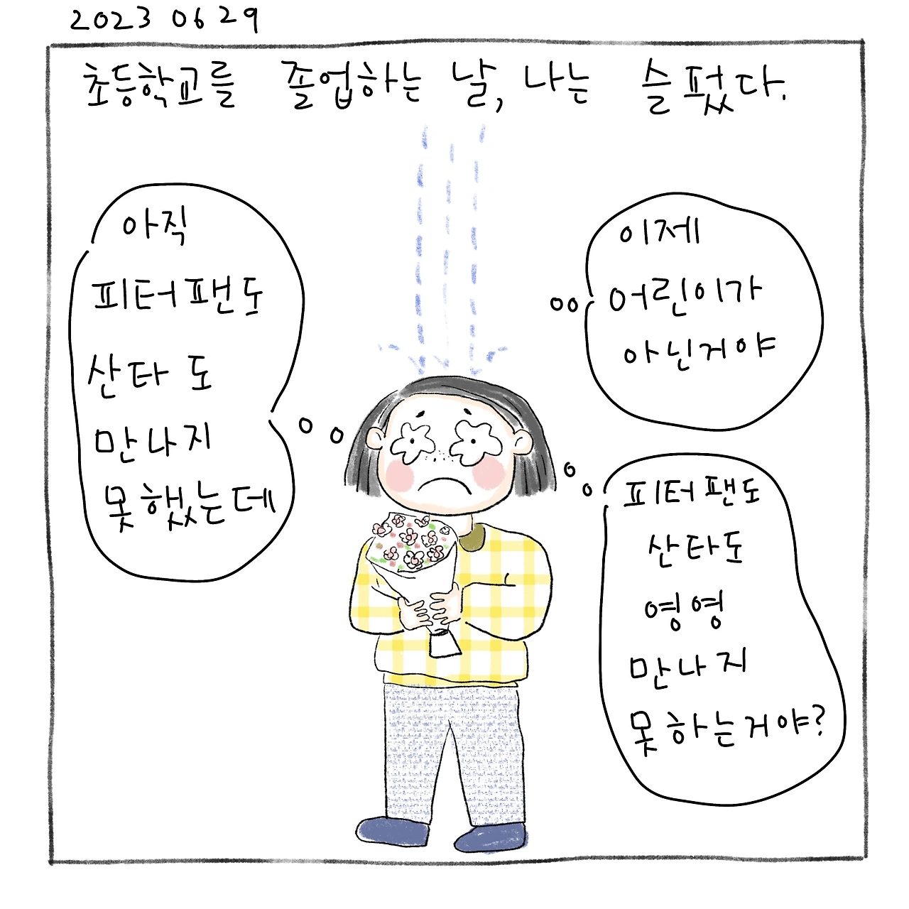 “아직 피터팬도 산타도 만나지 못했는데 이제 어린이가 아닌 거야.... 피터팬도 산타도 영영 만나지 못하겠지?”