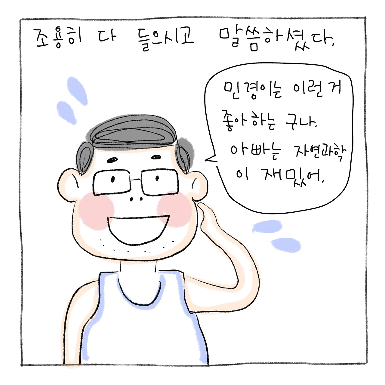 신나서 책 내용을 아빠에게 이야기했는데 아빠는 이런 내용 재미 없대요,