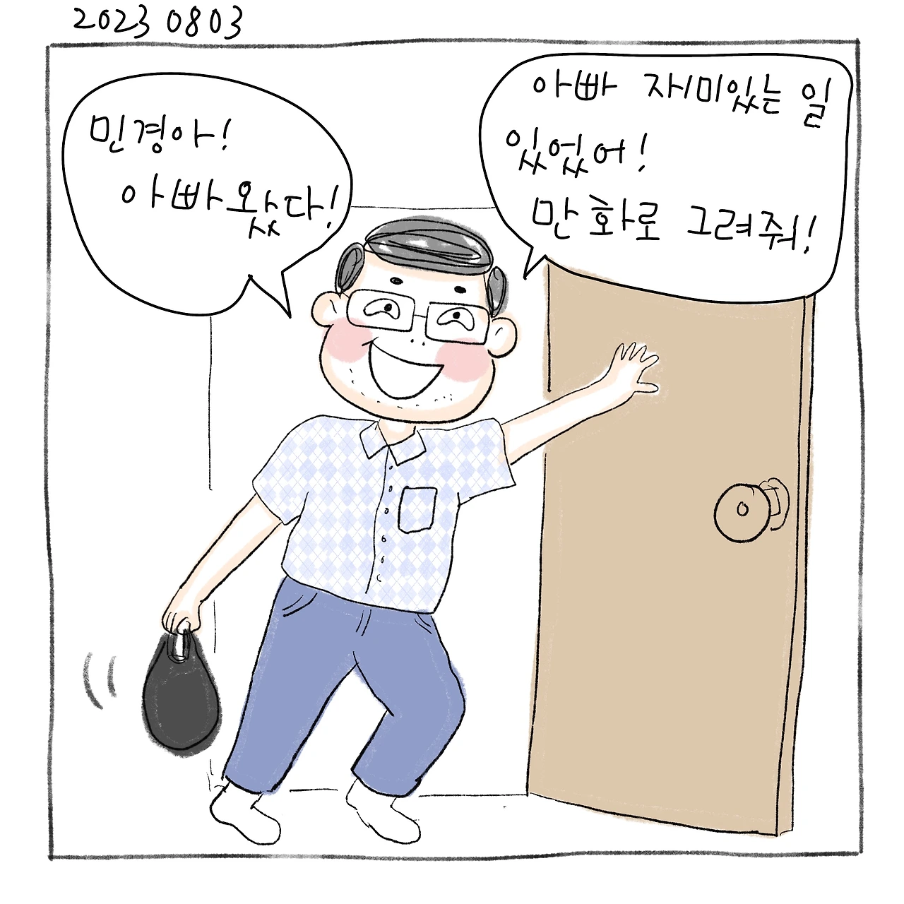 그저깨 부모님 집에 있었는데 아빠가 퇴근 후 문을 열고 집에 들어오시자마자 재미있는 일이 있었다고 만화로 그려달라 하셨어요,