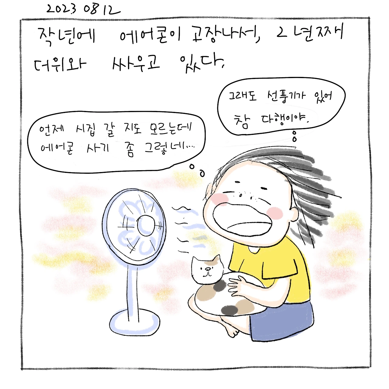 에어콘을 사자니, 언제 시집 갈 지도 모르겠고 에어콘과 설치비용도 비싸서 버티고 있어요.