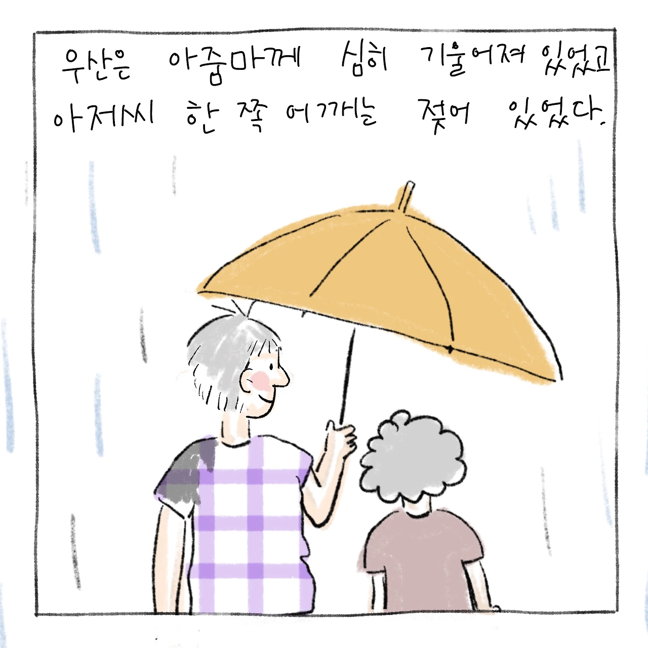 비오는 오늘 한쪽 어깨가 젖은 중년 부부의 모습이 참 아름다웠다.