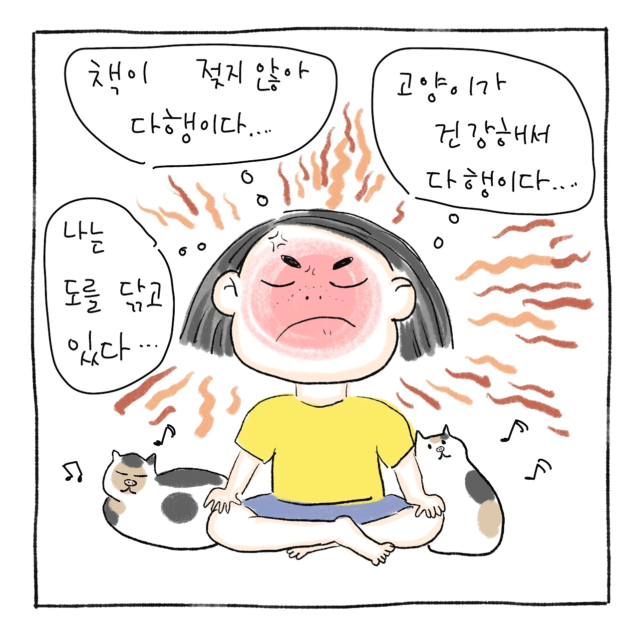 다행이다…. 그래도 책이 젖지 않은게 다행이다… 고양이들이 아프지 않고 건강한게 다행이다….