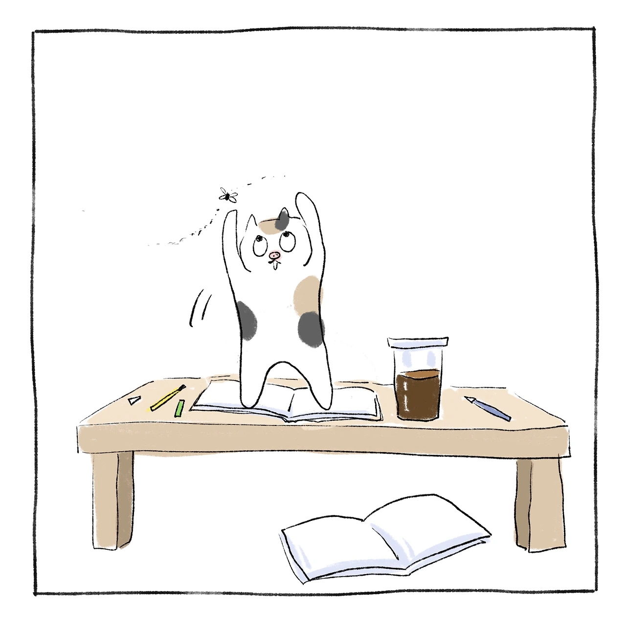 오늘은 집에 들어온 벌레를 잡는다고 책상위에 커피를 엎어 놓았어요…