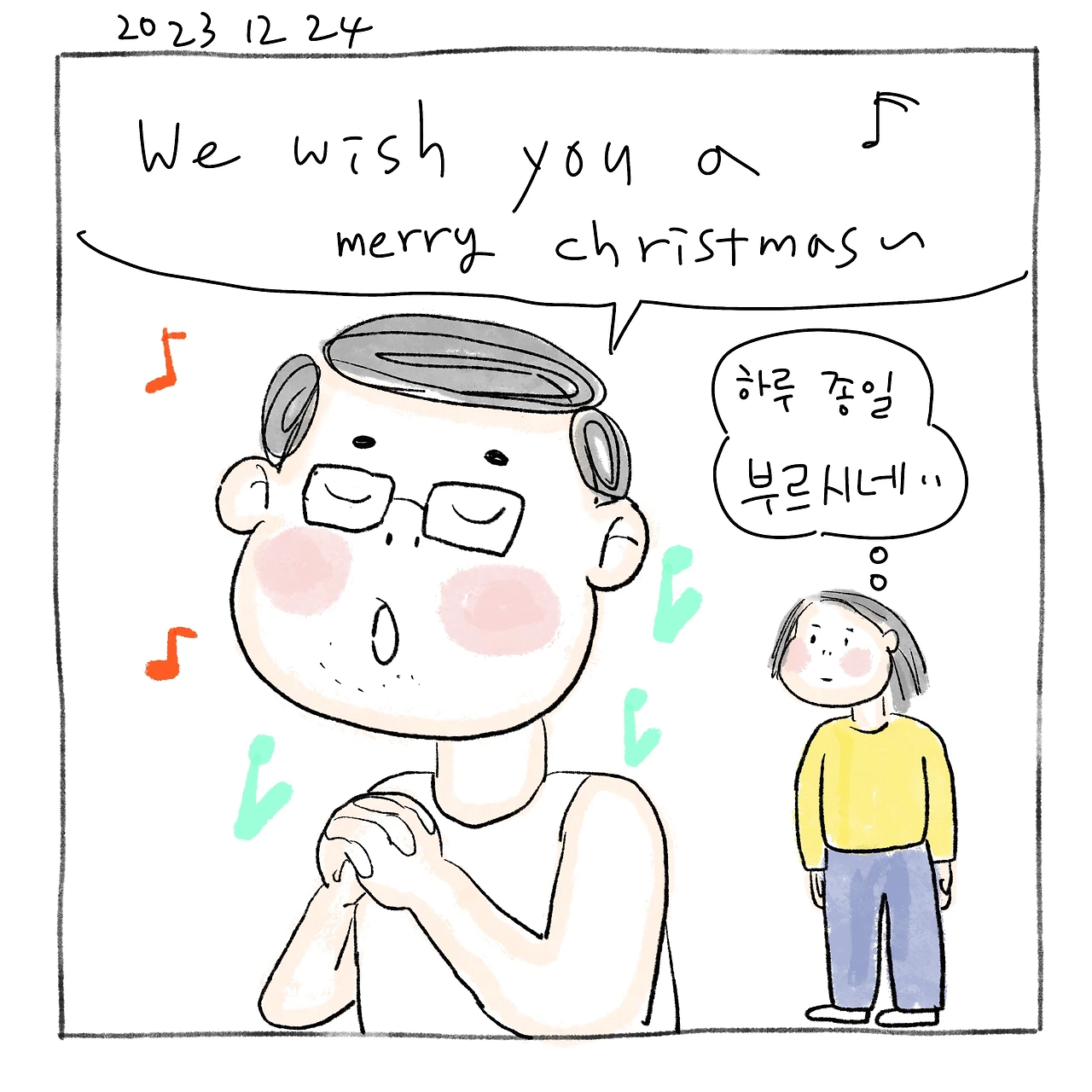 . 크리스마스라고 아빠는 하루종일 캐롤을 흥얼거리세요.
