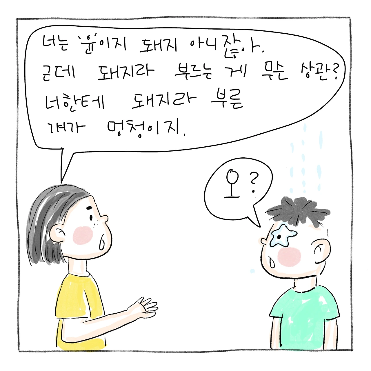 ”너 돼지 아니잖아. 근데 돼지라 부르는게 무슨 상관이야?