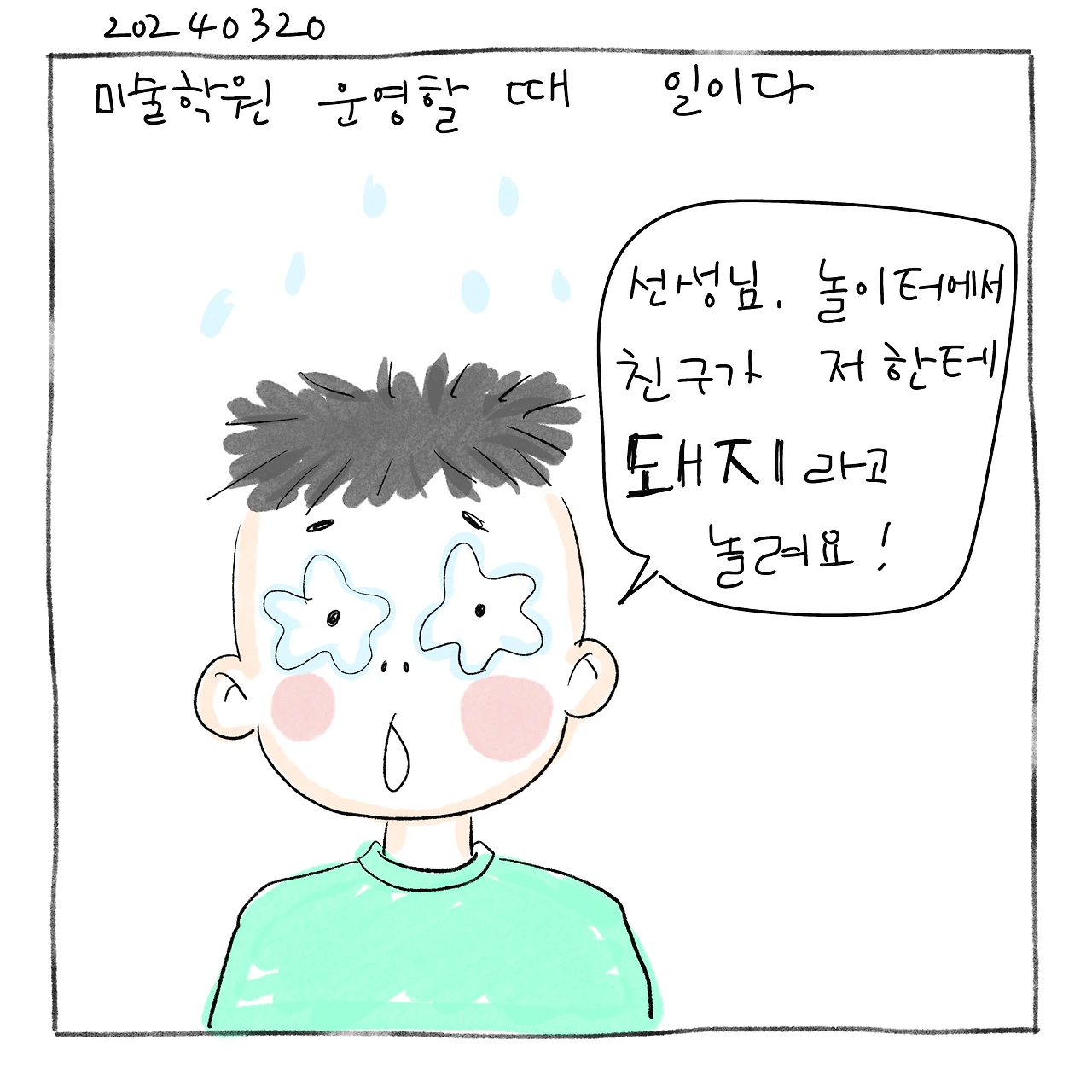 “선생님, 놀이터에서 친구가 저한테 돼지라고 놀렸어요.“