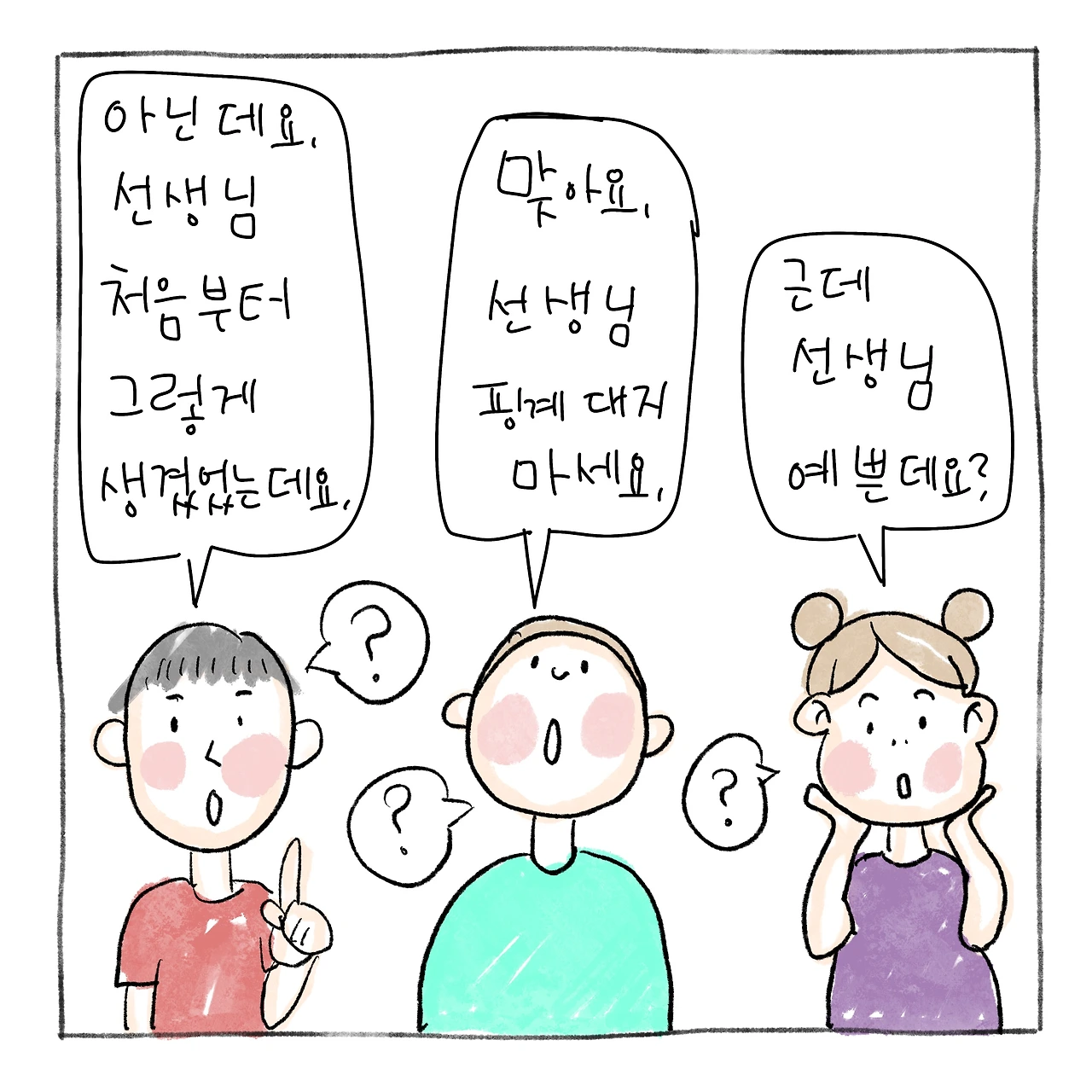 ”아닌데요? 선생님 처음부터 그렇게 생겼었는데요?“ 맞아요. 선생님 핑계대지 마세요!!”