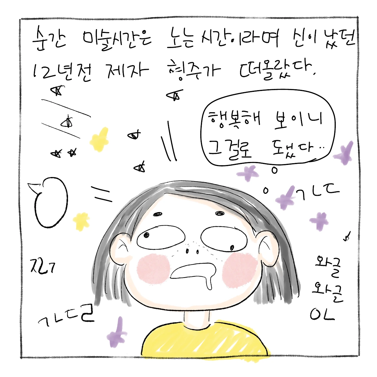순간 미술시간은 노는시간이라며 신이났던 12년전 제자 형주가 떠올랐다.