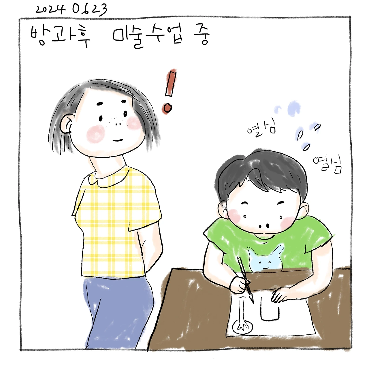 매주 화요일에 근처 초등학교에서 미술수업을 해요.