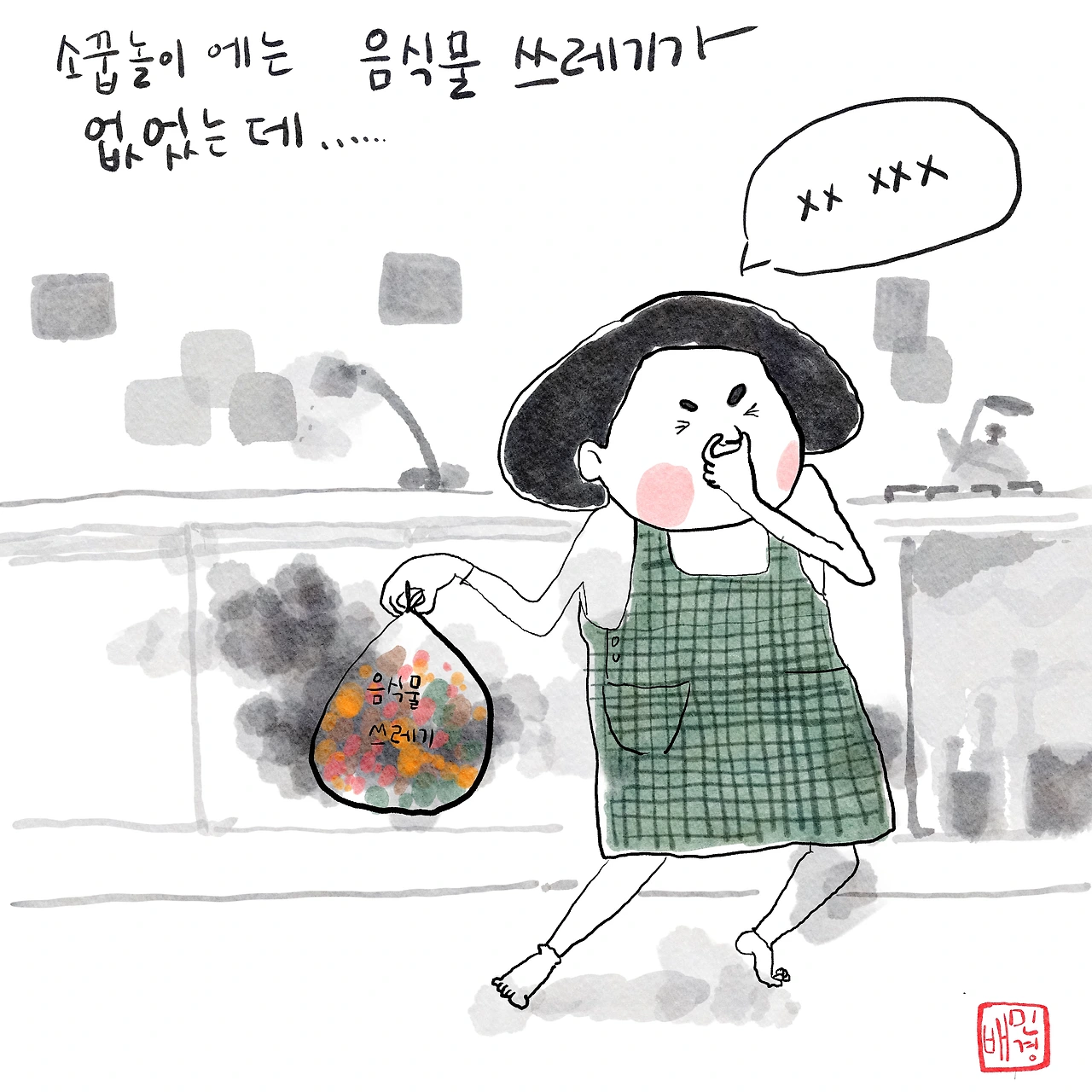 다른 건 그래도 재미있는데 음식물 쓰레기 치우기는 참 고역스러워요. 많이 모아서 엄마 아빠 전원주택에 모아 비료도 만들었는데 요즘엔 그냥 작은 봉투에 바로바로 버려요. 음식쓰레기 처리가 싫어서 가급적 음식을 남기지 않으려 하는데 우리 집 식사 담당 아저씨는 왜 이리 손이 크실까요... 남기는 거 싫어 맨날 나만 잔뜩 먹고.... 먹다 지쳐 남기면 상하게 되고.... 먹은 음식 연속해서 먹지도 않는 홍삼님....