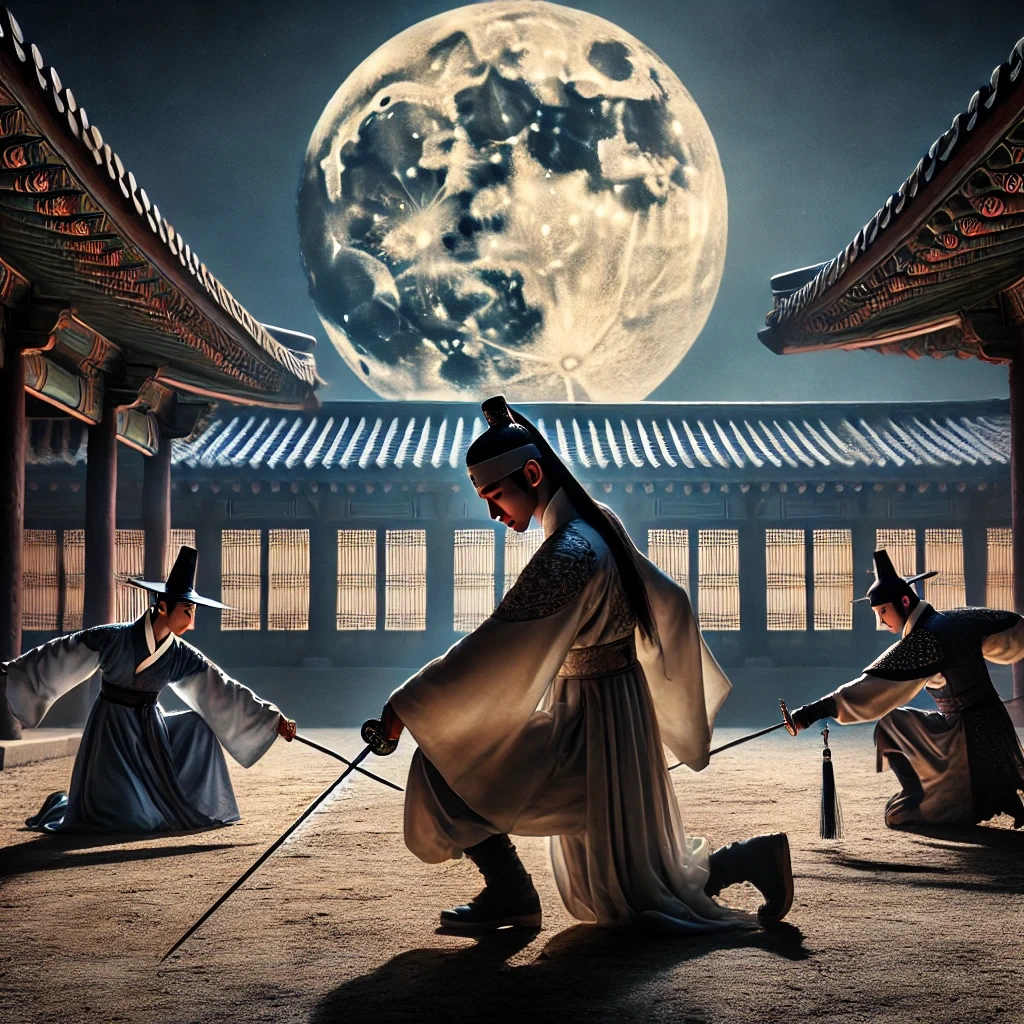 둥궁의 밤은 늘 깊다. 깊은 마음은 채윤을 만나고 오면 조금은 가벼워져서 지난 과거에서 있었던 일을 조금씩 잊어가고 있는 예지였다. 그래도 오늘따라 잠이 오지 않아서, 힘을 소비해야겠다 생각하고 검무장으로 가 권신을 상대로 무투를 벌였다.