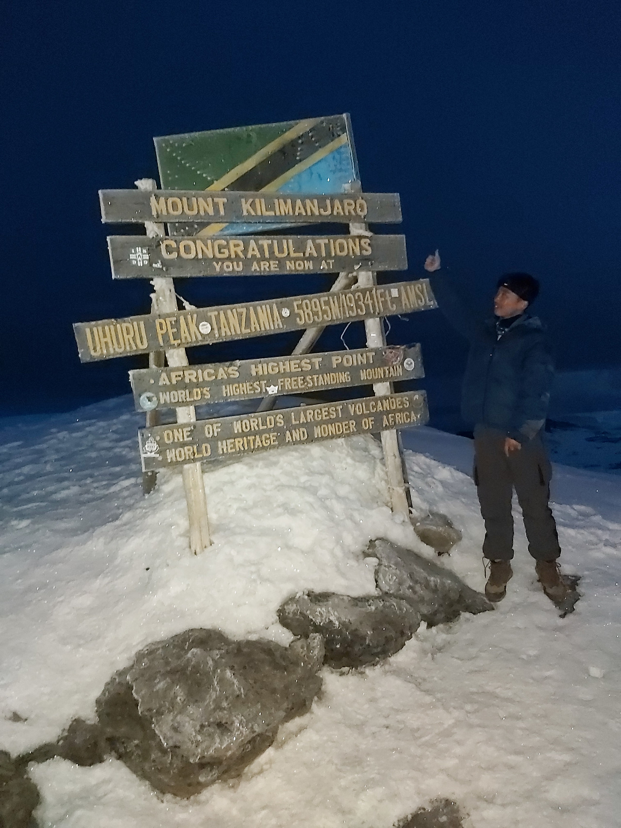 아침에 킬리만자로 산 정상에 도착하기 위해 자정부터 출발했다. 태생이 잠 깨는 게 힘들어 제일 마지막에야 어기적거리며 출발했고 같은 곳을 오르는 여행자들을 만날 때마다 서로 파이팅을 외쳤다. 춥고 졸렵고 산은 이전까지와 달리 가파랐다. 킬리만자로 등반의 꽃이 오늘이겠거니 생각하며 산을 오르다 보니 5시간 반 뒤에 5,895m, 정상인 우후루 피크에 도착했다. 5일간 걷는 내내 탄자니아에서 겪은 일과 앞으로의 일을 생각했고 나아갈 방향을 찾을 수 있었다. 산을 내려오는 길에 미국에서 온 아버지와 아들이 서로를 다독이는 걸 보며 함께도 나쁘지 않겠다고 생각했다. 그저께부터 앓던 몸살과 미열이 남아 있어 하루 일찍 산을 내려왔다.
