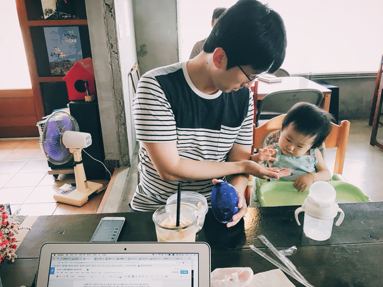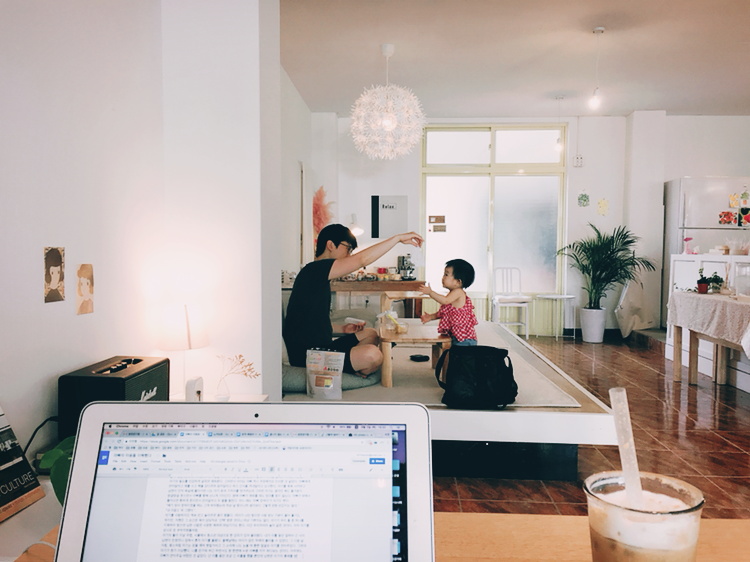 <내가 엄마가 되어도 될까> 원고를 집필하던 풍경. 내가 글을 쓰는 동안 남편은 육아를 전담했다.
