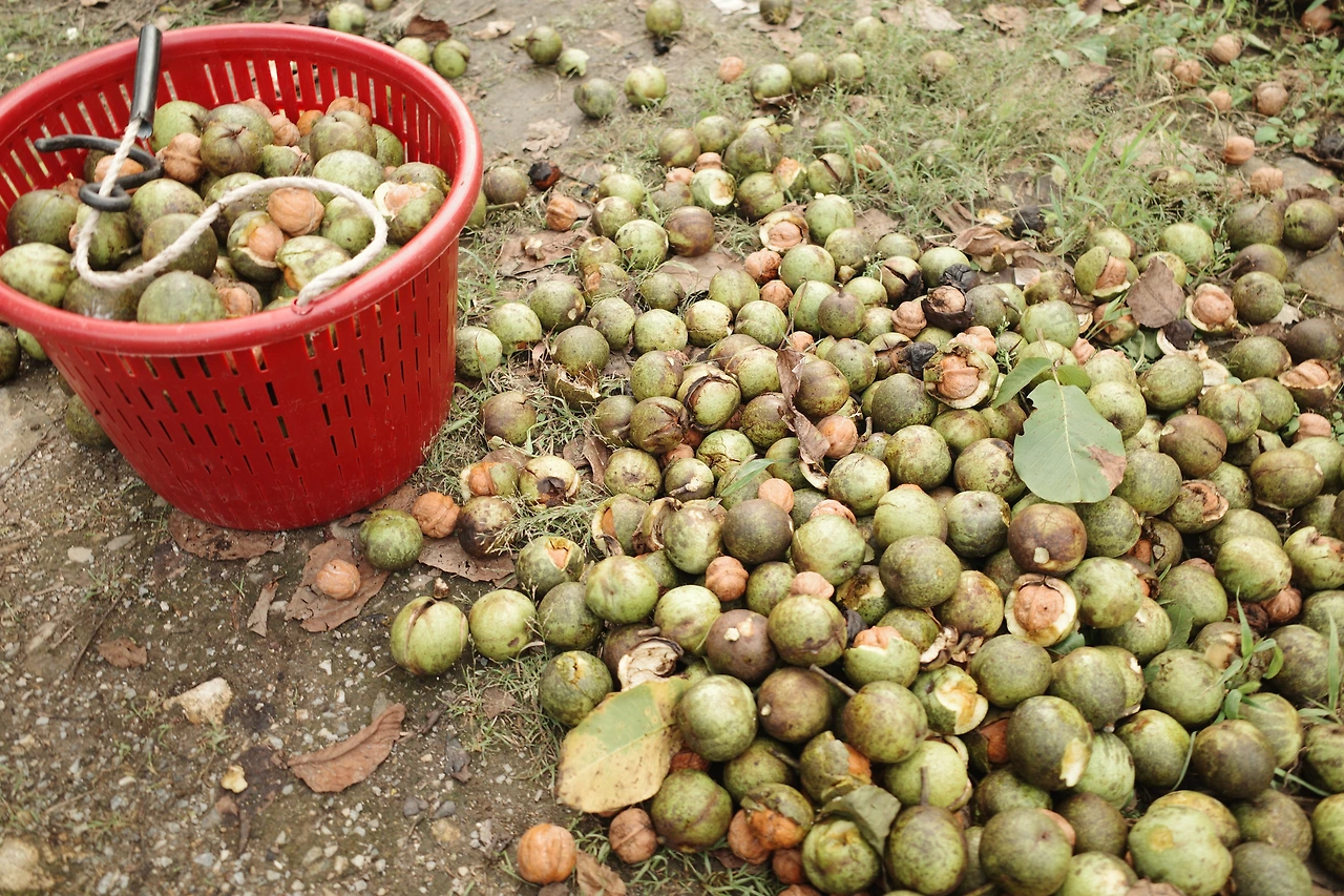 나무가 커서 생각보다 양이 많았다. 남편과 둘러앉아 장갑을 끼고 호두를 줍고, 아직 초록 껍데기가 덜 벗겨진 것들은 껍질을 까거나, 발로 밟아 터트렸다. 할머니 말씀이 물에 '바락바락'씻어서 말려야 된다고 알려주셔서 호두를 열심히 씻어 햇빛에 널어두었다. 얼마나 말려야 되는지 몰라 마당에 일주일을 넘게 두었다가 하나씩 까서 먹어보고 적당히 말랐다 싶을 때 거둬서 창고에 넣어두었다.