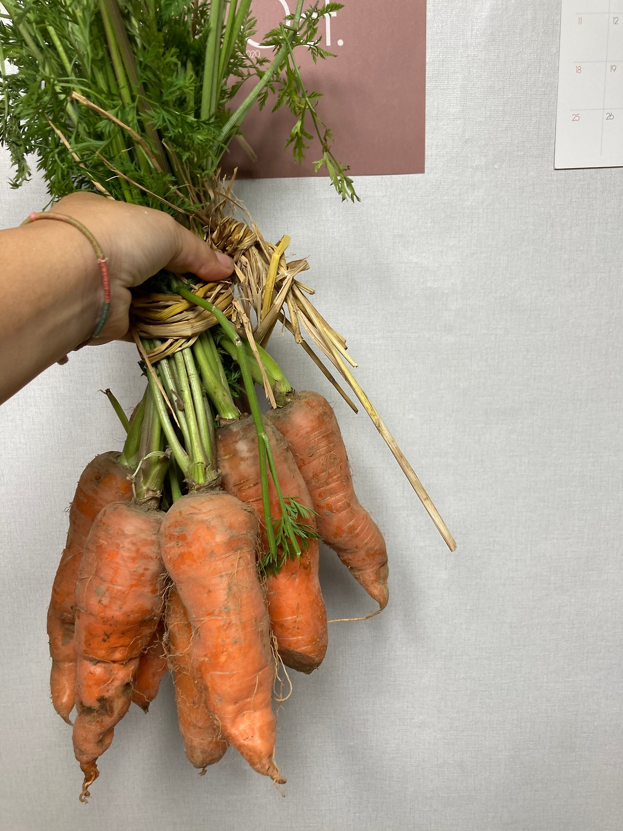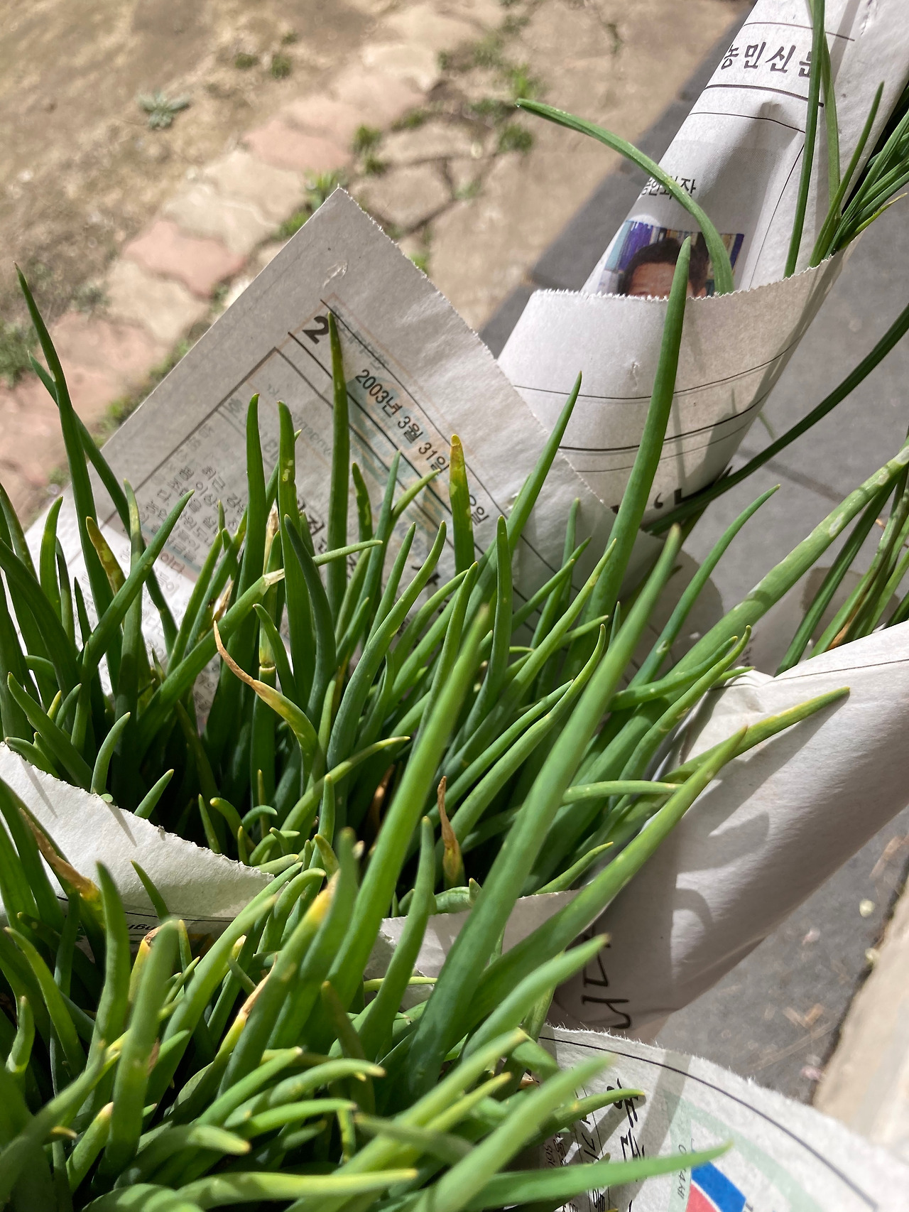 짚으로 묶은 당근을 주셨다. 그리고 텃밭에서 자란 쪽파를 오래 된 신문지에 싸서 또 다른 이웃들과 나눈다,