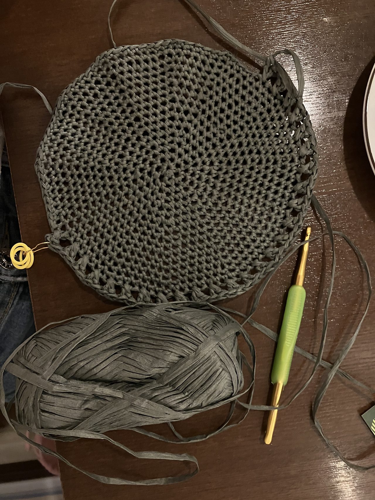 꽈배기 모양으로 파는 실타래를 사용하려고 풀게 되면 아래 사진과 같은 모습이 된다. 저상태에서 그대로 실을 당기며 사용하게 되면 실이 왔다 갔다 하다가 엉키게 된다. 엉킨 실을 푸는 건 뜨개를 하면서 푸르시오(틀린 지점 또는 그전 지점까지 풀어서 다시 떠야 하는 것) 다음으로 만나고 싶지 않은 상황이다.