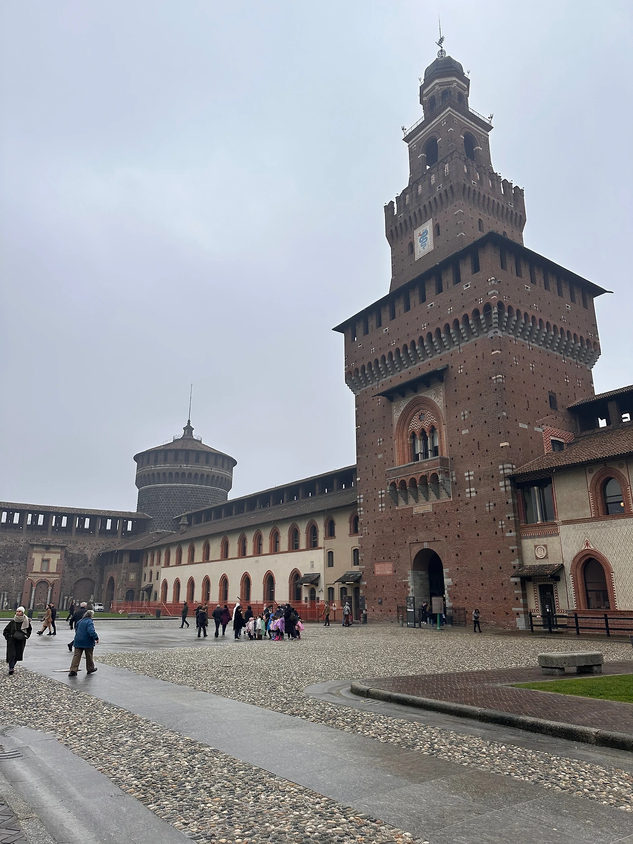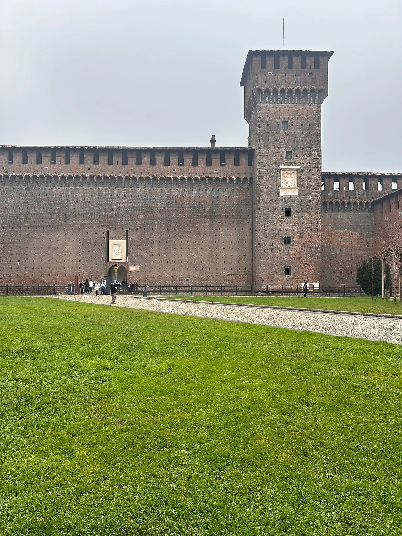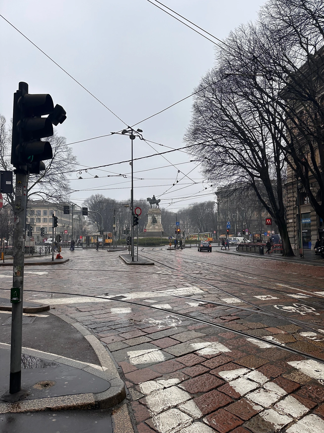 이러한 빛 속에 오래 있으면 기분이 가라앉기도 한다지만, 적어도 이 순간만큼은 시각적 안정감이 주는 사색의 시간이 소중했다. 스포르체스코 성의 붉은 벽돌도, 광장을 오가는 모든 움직임들도 회색필터를 통과한 듯 가라앉아 있다.