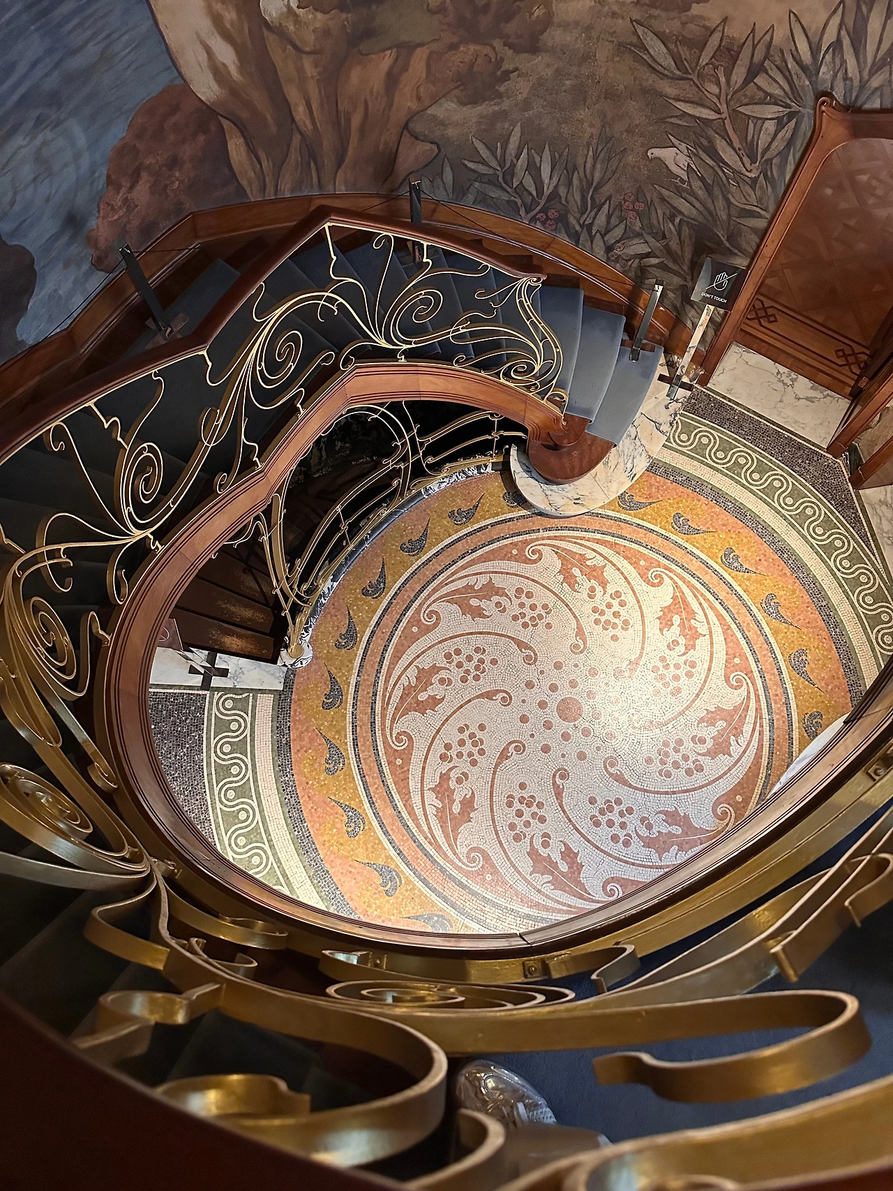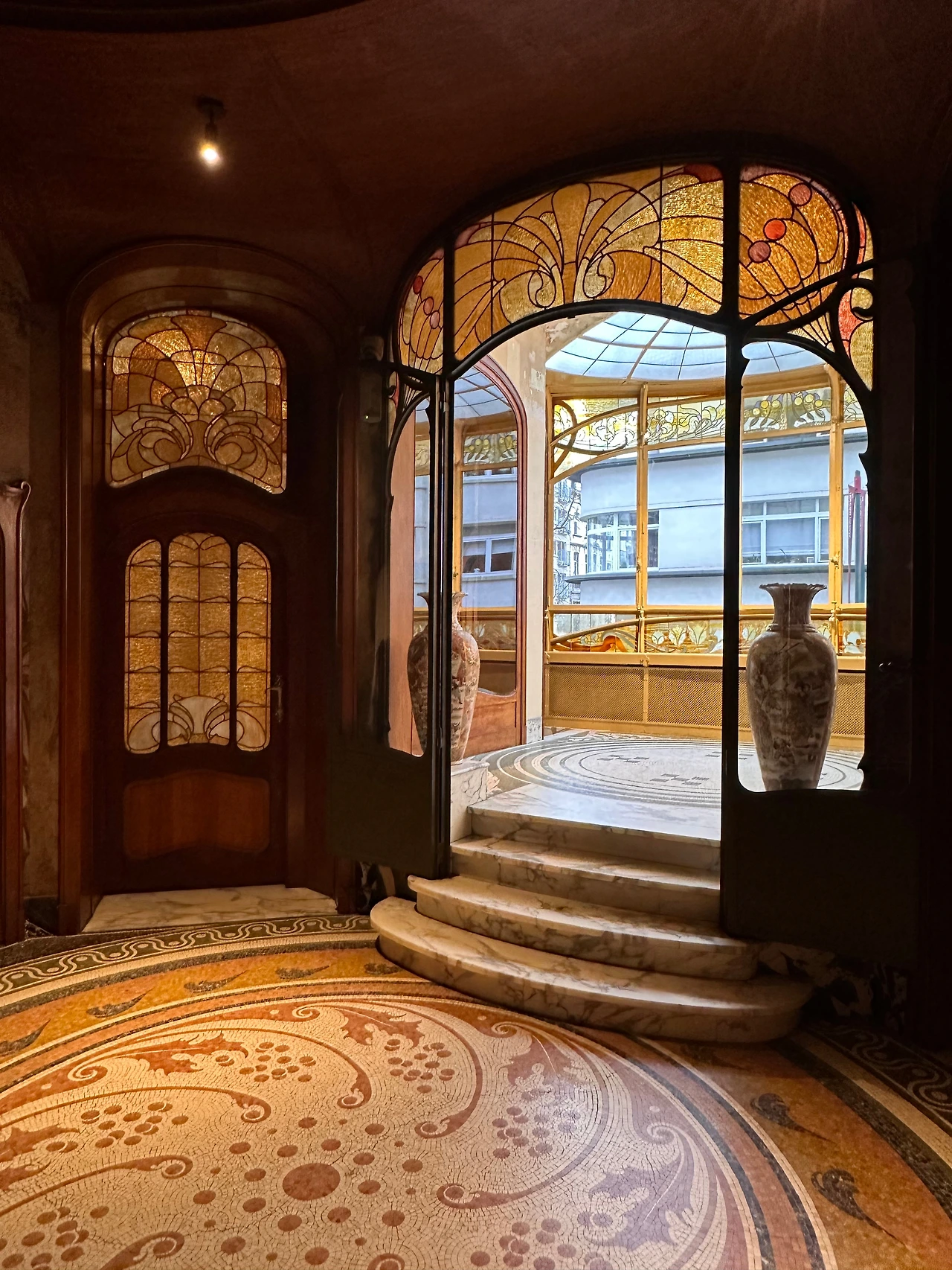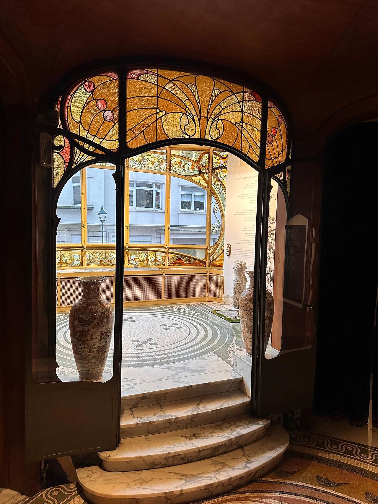 건물 안으로 들어서면 마치 거리로 흘러내릴 것처럼 확장되어 보였던 테라스가 온실의 개념으로 창가에 자리 잡고 있는 것을 보게 된다. 둥근 금속 프레임으로 이루어져 있는 천창과 유기적인 곡선으로 이루어진 색유리의 창, 원형 패턴의 모자이크 타일로 마감된 바닥은 빛과 재료의 질감이 섬세하게 서로 조화를 이루었다. 유리 위로 흐르는 오후의 빛은 손끝으로 만질 수 있는 재료였다. 오르타와 아농이 남긴 공간의 언어는, 결국 빛이 아니라 ‘빛을 다루는 손의 기억’이었는지도 모른다.