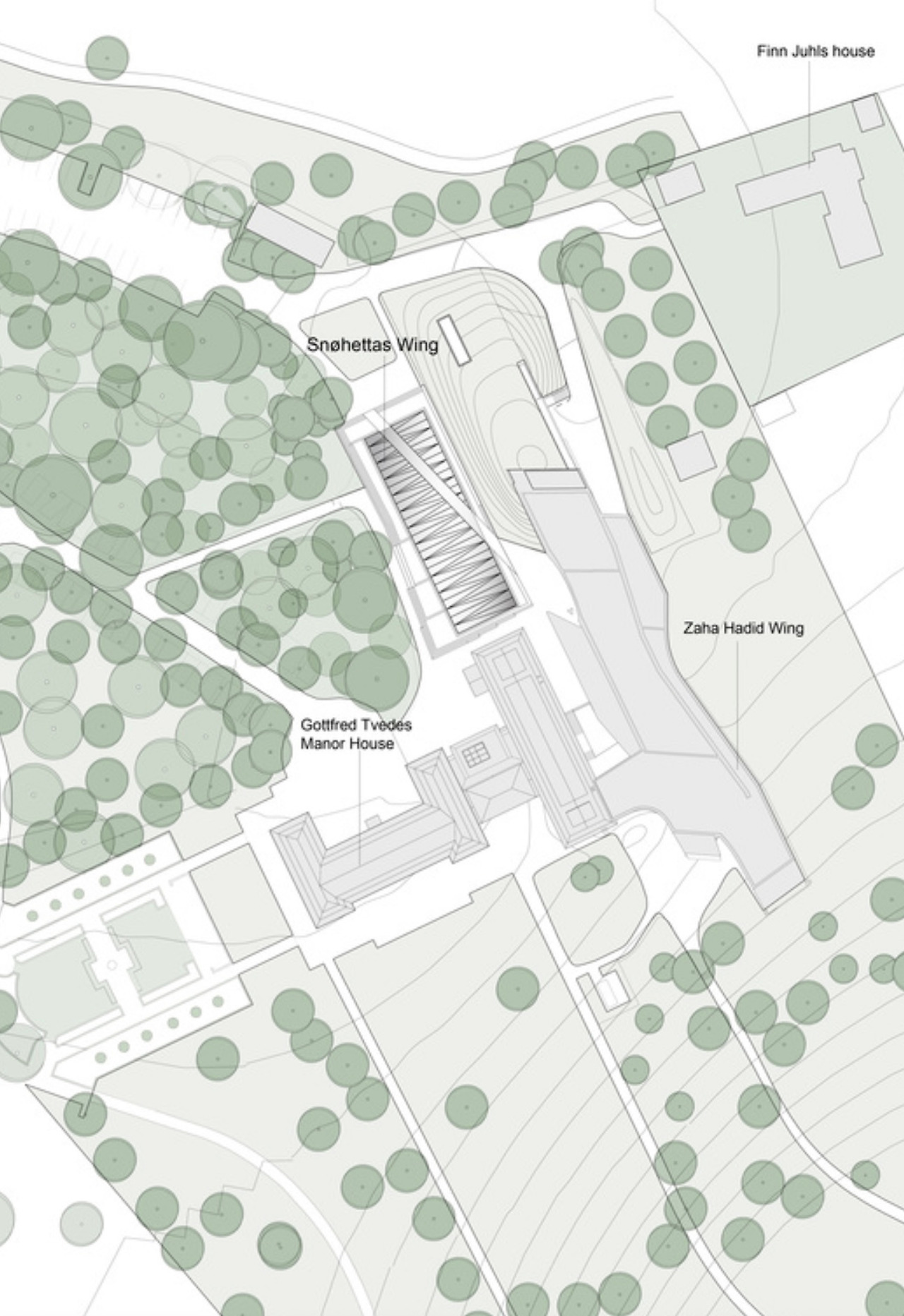 드디어 미술관에 도착하였다. 덴마크 코펜하겐 북쪽, 예거스보리 뒤레하버 근처에 위치한 이 미술관은 주변이 숲과 정원으로 둘러싸여 있다. 1918년 지어진 저택에, 자하 하디드의 설계로 2001-2005년의 공사 기간을 거쳐 증축되었고 2021년에 스노헤타의 지하가 증축되었다. 그전에 증축된 하디드 동을 포함하여 전체가 원형의 동선으로 연결되었다.