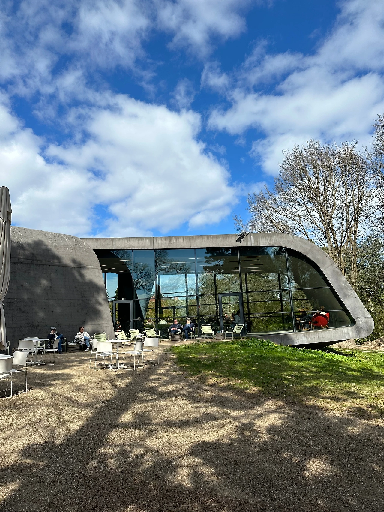 설계를 맡은 자하 하디드는 무엇보다 자연과의 융합, 일체화된 자연 지형과의 조화를 고려하여 건축물이 주변 경관 속에 유기적으로 이어지도록 설계하였다. 건축물이 자연과 융합된다는 것은 자연의 지형을 따르고 그 흐름을 단절하지 않고 이어간다는 것일까? 굽이지고 오르락내리락하는 땅의 굴곡은 건축물의 내외부에도 흘러간다. 증축된 공간의 내부는 곡선과 유동적인 형태로 연결되어 갤러리와 복도의 흐름을 자연스럽게 연결한다. 갤러리의 카페가 있는 건물의 끝 부분의 외관은 마치 커다란 바위덩이가 집 앞마당에 굴러다니다 잠시 멈춰 있는 것처럼 모서리의 끝이 들려 있다. 금방이라도 옆으로 움직일 것 같은 형상은 멈추지 않고 흘러가는 자연의 속성일 것이다. 움직임, 변화, 리듬으로 자연의 생동감은 표현된다.
