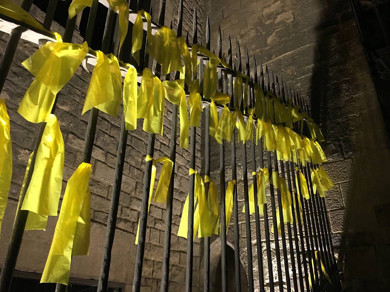 광장을 걸어 돌아 나오면서 우리는 건물 창가나 광장에 노란 리본이 걸려있는 것을 볼 수 있었다. 이는 카탈루냐의 독립을 위해 싸우다 투옥된 정치인들을 석방을 기다리는 카탈루냐 인들의 바람들을 걸어 놓은 것이라고 했다.