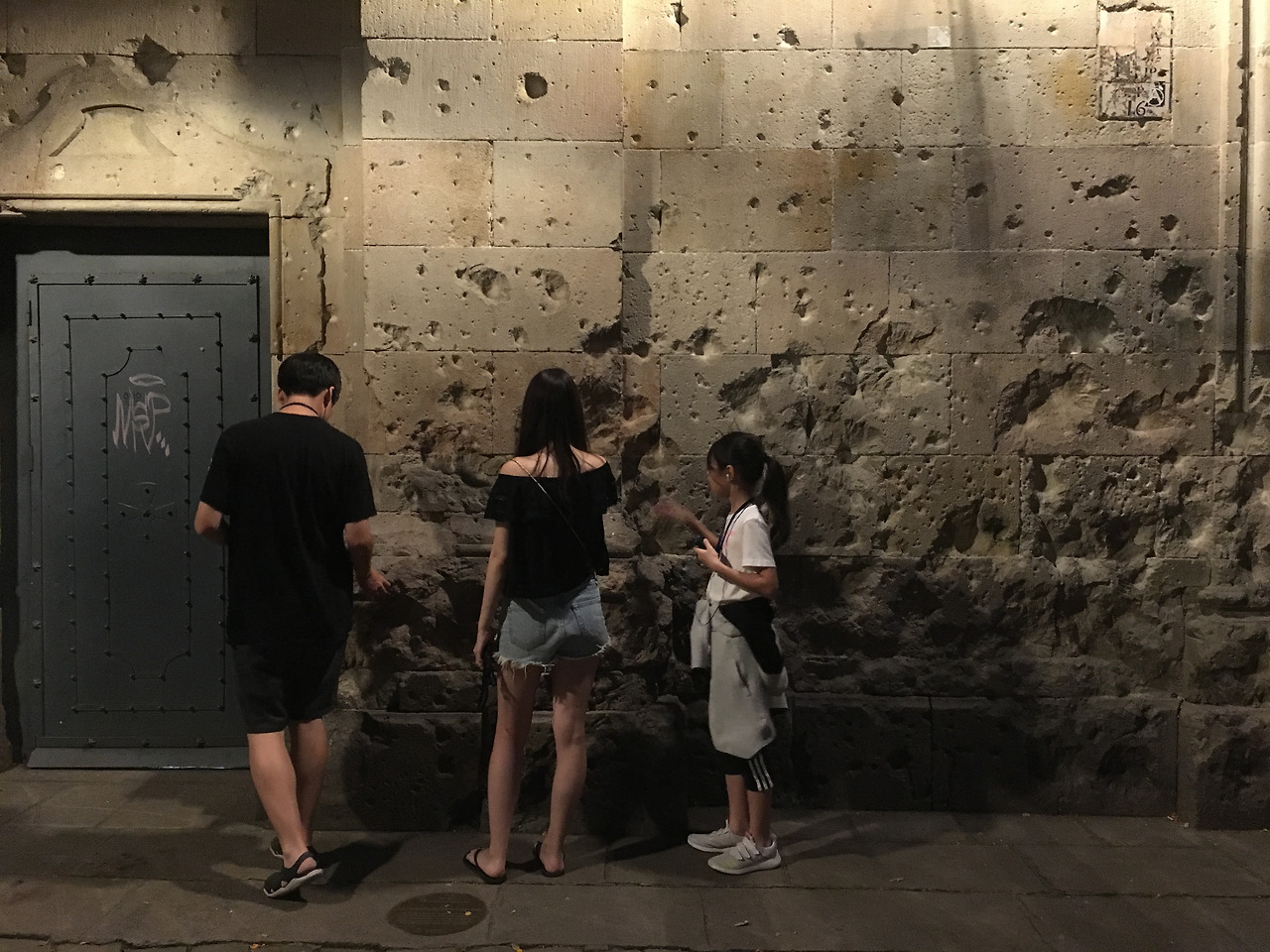 그런데 이 광장의 벽면에는 슬픈 이야기의 흔적이 남아있다. 스페인의 독재자 프란시스코 프랑코(1892-1975)는 스페인 내전이 끝난 후 민주주의를 말살하고 그에게 반대하는 모든 세력을 폭력으로 진압했다. 반정부 성향의 언론사를 탄압하고 반정부 인사를 감옥에 잡아넣었다. 어느 날 산 펠리프 광장을 폭격한다는 소식이 들렸다. 언제 폭격이 가해질지 모르는 상황에서 이 광장에 있는 초등학교의 선생님들은 아이들을 옆 건물 지하로 피신시키기 위해 아이들과 함께 광장을 내달렸고 하필 그때 프랑코의 폭격명령이 떨어졌다. 어리고 여린 꽃들이 무참하게 광장에 떨어지고 말았다. 우리는, 그 옛날 폭격으로 인해 부서진 벽면과 바닥이 그대로 남아있는 공간에서 처참했던 그 순간의 슬픔을 느꼈다. 살기 위해 달렸던 순간에 아이들이 느꼈을 두려움과 공포가, 깨지고 부서진 벽면과 깊이 파인 바닥에 남아 있는 듯했다. 우리는 그 광장에서 파블로 카잘스가 연주한 바흐의 "무반주 첼로 모음곡"을 들었다. 귀에 익숙한 그 곡은 딸아이가 어린 시절 첼로를 배울 때 열심히 연습하던 곡이었다. 무척이나 더웠던 어느 해 여름, 가을에 있을 교내 음악 경연대회를 준비한다고 같이 땀을 흘리며 열심히 활을 그어댔던 곡이었다.
