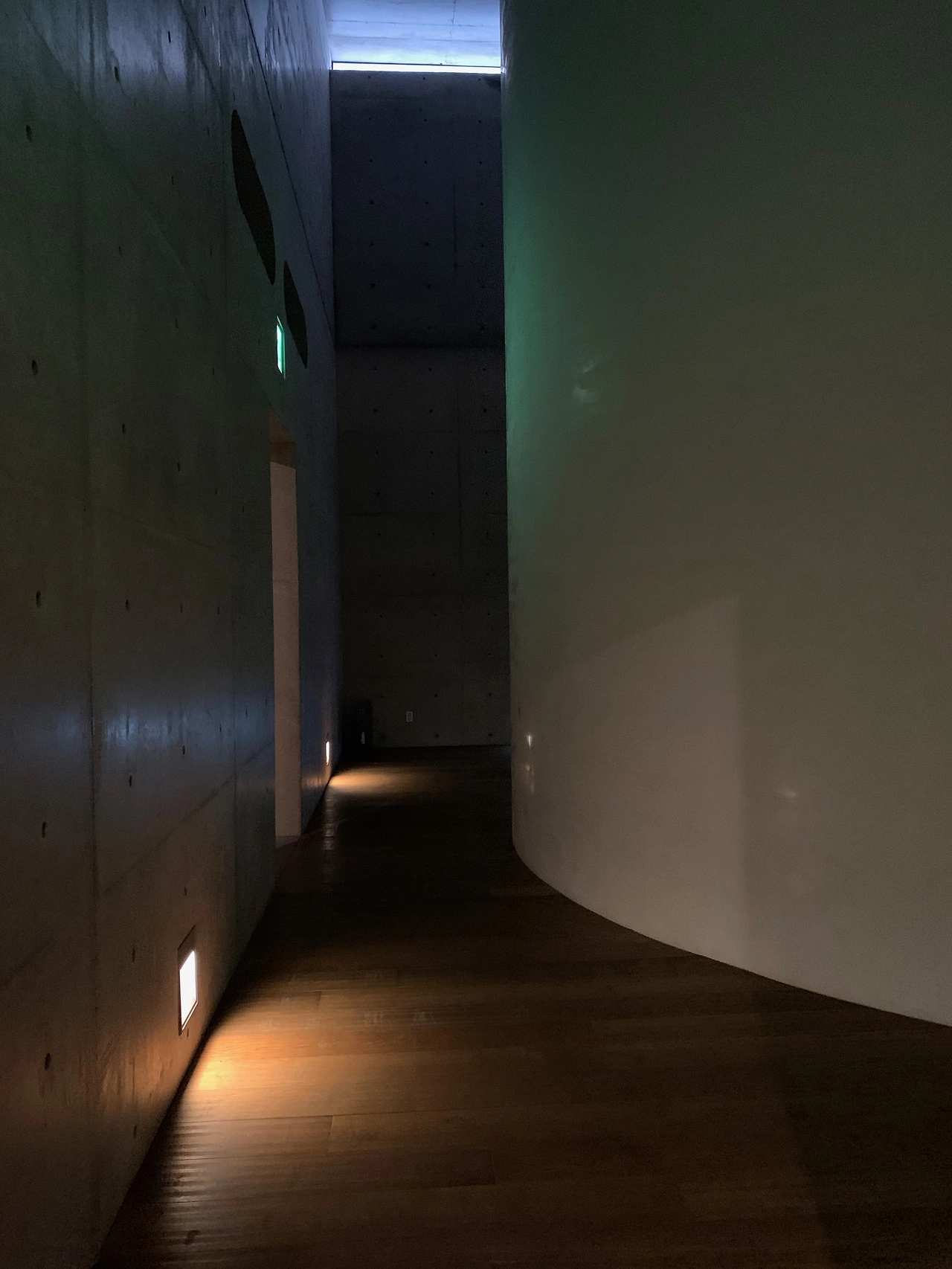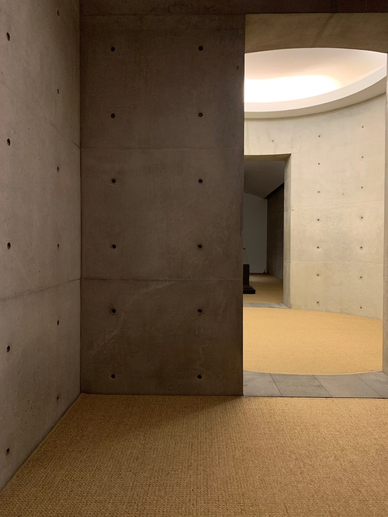 이제 전시관 안으로 들어가는 건가? 생각한 순간, 나는 어느새 건물의 외곽을 돌고 있었다. 건축가는 쉽게 우리를 건물 안으로 걸어 들어가게 두지 않았다. 건축가가 의도하는 대로 나는 길을 따라 걸어야 했다. 코너를 돌 때마다 달라지는 하늘의 풍경, 제한된 시선은 걸음을 걷는 한 발, 한 발에 무게를 느끼게 한다. 안도 타다오는 이곳을 천천히, 아주 천천히 걸어보기를 바라지 않았을까? 느리게 걷는 것이 좀처럼 쉽지 않은 일상에서 벗어나, 건물 주변을 걸으며 제주의 바람을, 돌을, 하늘을 그리고 그 안에 있는 나를 고요히 느끼도록 이 길고 긴 공간과 시간을 선사한 것이리라.