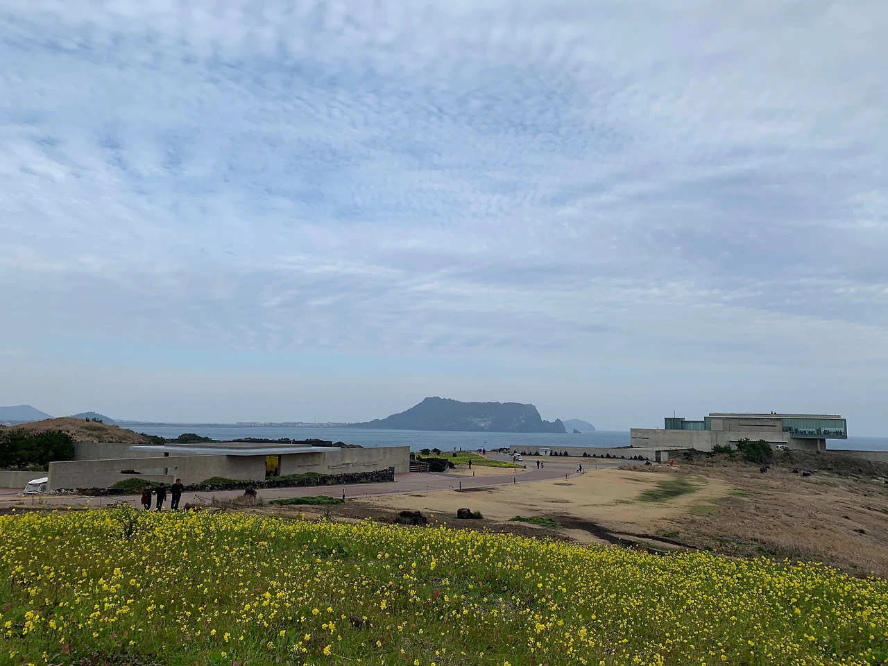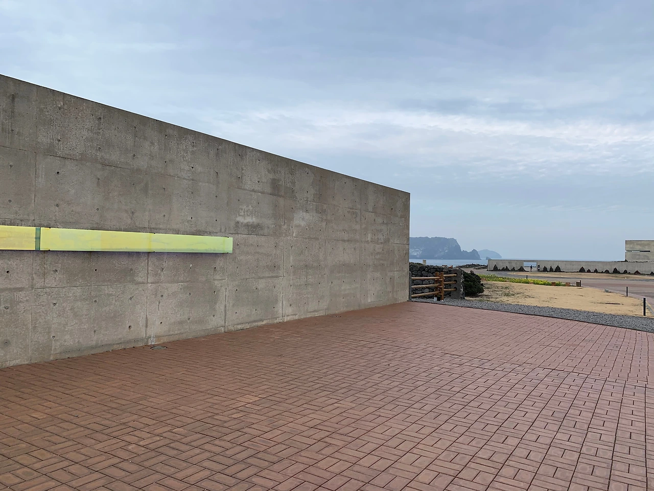 언덕을 오르자마자 안도 타다오의 유민 미술관을 보기 위해 목을 빼고 주변을 살폈다. 하지만 아무리 둘러봐도 언덕의 능선을 따라 펼쳐진 바다와 하늘 그리고 노푸른 유채꽃만이 끝이 없었다. 하늘과 마주하고 바다와 인사를 하다 보면 유채꽃이 손짓을 한다. 그렇게 천천히 제주의 자연에 다가가는 것이 미술관까지 이르는 과정이었나 보다. 미술관은 마치 언덕의 한 부분 인양 나지막이 능선을 따라 흐르고 있었다.