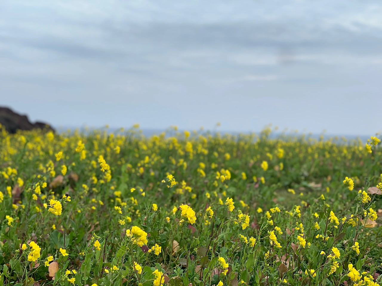 바람이 그래도 제법 부는 날이었다. 겨울의 한가운데서, 해변가로 향하는 길인데 바람이 불어오는 것은 이상할 것이 없었다. 더욱이 제주 아닌가? 흔들흔들 갈대밭을 지나면서 보이는 유채꽃이 계절을 잊게 한다. 한 겨울의 추위에, 바람에 볼이 시려도 노오란 유채꽃이 생긋거린다. 정말 제주로구나!