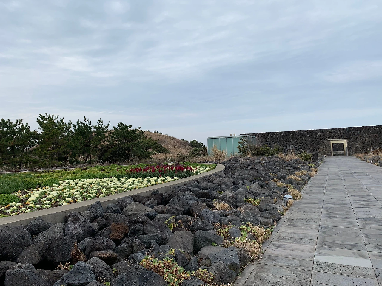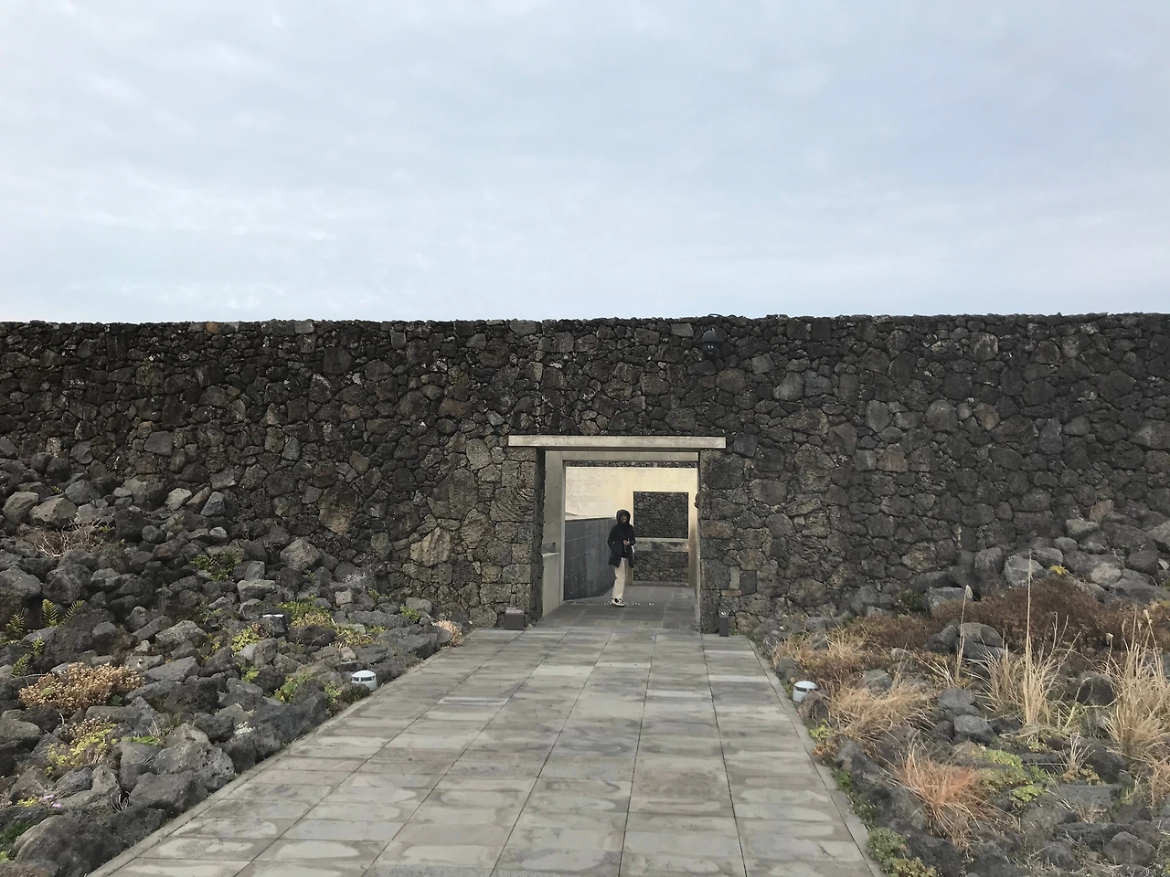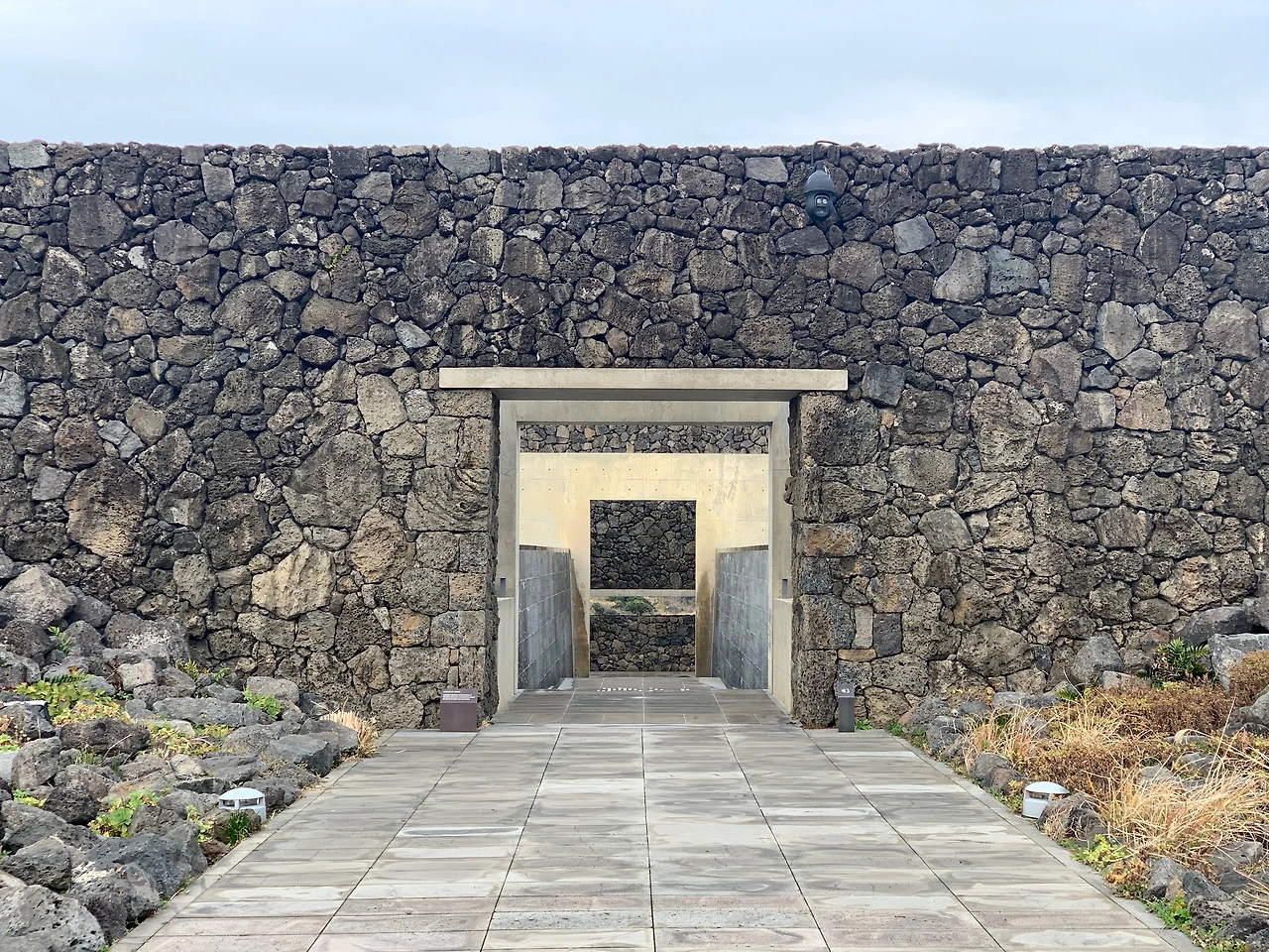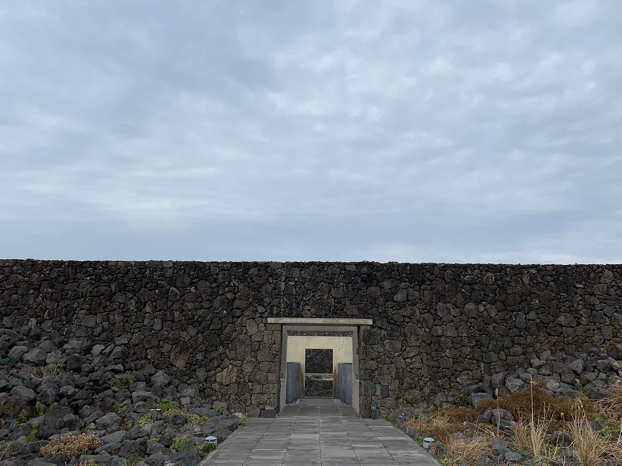 제주의 돌, 바람, 꽃들이 지형의 생김에 따라 펼쳐져 있는 길을 지나면 멀리 거친 현무암을 쌓아 가로로 긴 벽면이 나와 대면한다. 중앙에 뚫린 작은 개구부를 통해 길이 이어지지만 멀리 서는 안쪽이 보이지 않아 가까이 다가 갈 때까지 그저 호기심에 걸음을 재촉할 뿐이다.