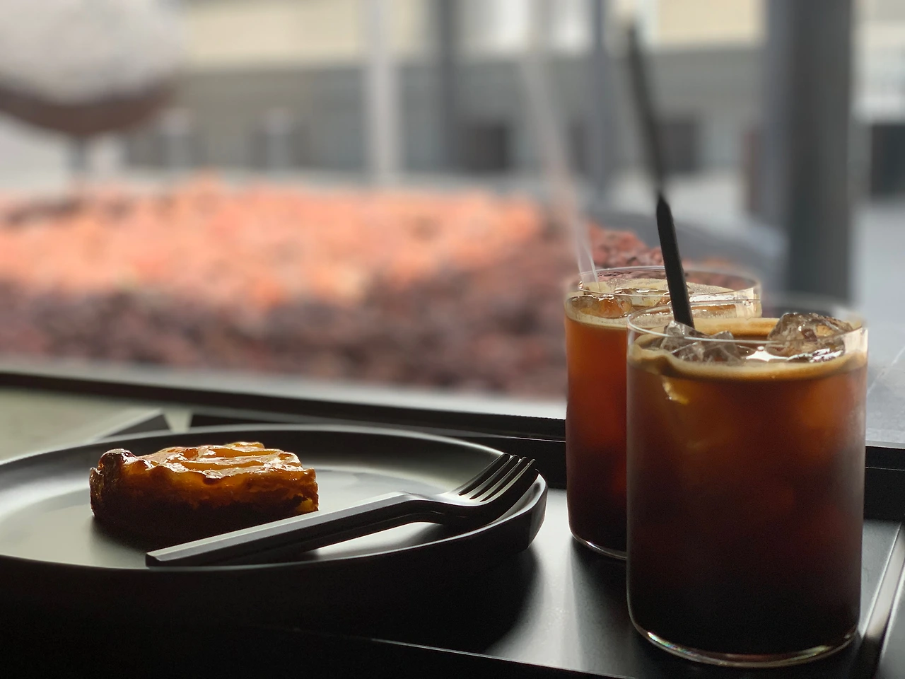 나는 꿈꾸듯 듯 창 밖을 바라보다 같이 간 친구와 검정 접시에 담긴 애플파이를 검정 포크로 맛있게 먹었다. 나는 친구와 현실적인 이야기를 나누면서도 하늘에 붕 떠 있는 나무를 바라보면 왠지 모르게 마음이 즐거워졌다. 나무 한 그루의 비현실성이 나에게 그토록 매력적으로 느껴진 이유는 무엇이었을까? 얼음이 시원하게 담긴 검정 아메리카노가 비워질 즈음, 우리는 아쉬운 마음으로 자리에서 일어나 카페를 나왔다. 마치 다시 현실의 문으로 걸어 들어가듯이......