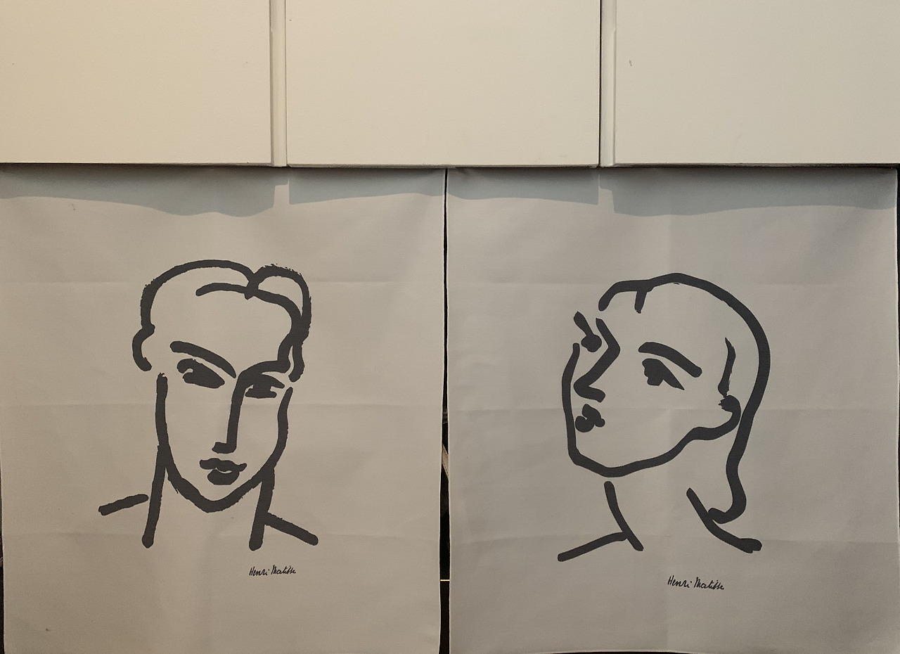 저 두 작품은 마티스의 노년 때의 작품으로 동판화 기법 중 하나인 애퀴틴트로 제작되었다. 야수파 화가로서 그가 보여줬던 선명하고 강렬했던 작품들과는 달리 그 선이 매우 간결하고 단순하다. 그 선의 강렬함은 그것이 놓인 공간 속 모던한 라인의 가구와 무표정한 벽면 속에서 생동감을 더하는 것 같았다. 방을 나와 거실로, 주방으로 그 앞을 지날 때마다 마주치는 두 얼굴이 단 한순간도 지루하지가 않다. 마티스가 두 사람의 얼굴에서 표현하고자 하였던 것이 정확히 어떤 것이었는지 알 수 없지만 그 둘을 지나갈 때마다 나의 시선을 붙잡고 잘 놓아주지를 않는다.