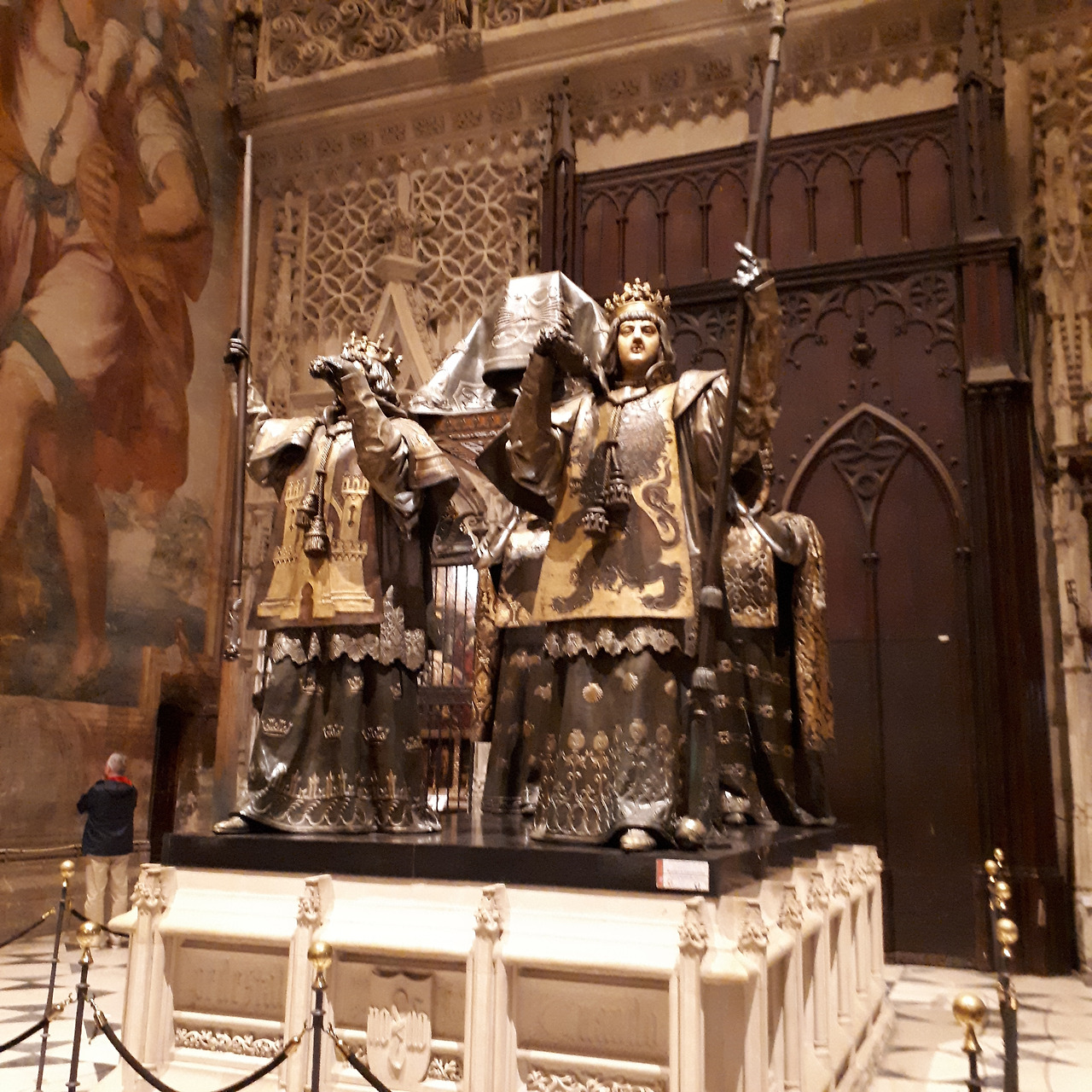 세비야 대성당으로 이동해서는 콜럼버스의 무덤을 보았다. 콜럼버스의 관을 스페인 왕국을 이루는 네 명의 왕이 운구를 하고 있다. 스페인이 무적함대로서 세계의 바다를 호령하던 그 시발점이 바로 콜럼버스란 인물이란 점을 칭송하는 듯했다. 콜럼버스 무덤이 땅에 묻혀져 있지 않고 운구되어있는 형태인 이유로 콜럼버스가 절대 죽어서도 스페인 땅에 묻히지 않겠다는 유언으로 인한 것으로 알고 있는 사람들이 많다. 하지만 이는 거짓소문, 가짜뉴스다. 당시 콜럼버스를 비롯한 선원들은 절대 죽어서도 땅에 묻히지 않는 걸 진정한 바닷사람이란 의미로 여겼다고 한다. 그 예로, 포르투갈 리스본 제로니무스 수도원에 묻혀있는 바스코 다 가마의 무덤을 보면 사자 조각상들이 무덤을 받히고 있는 형태로 죽어서도 땅을 밟지 않는 진정한 마도로스의 모습을 보여준다. 콜럼버스는 심지어 스페인 4국의 왕들이 운구하고 있으니, 그의 스페인에서 드높은 위상을 엿볼 수 있다.