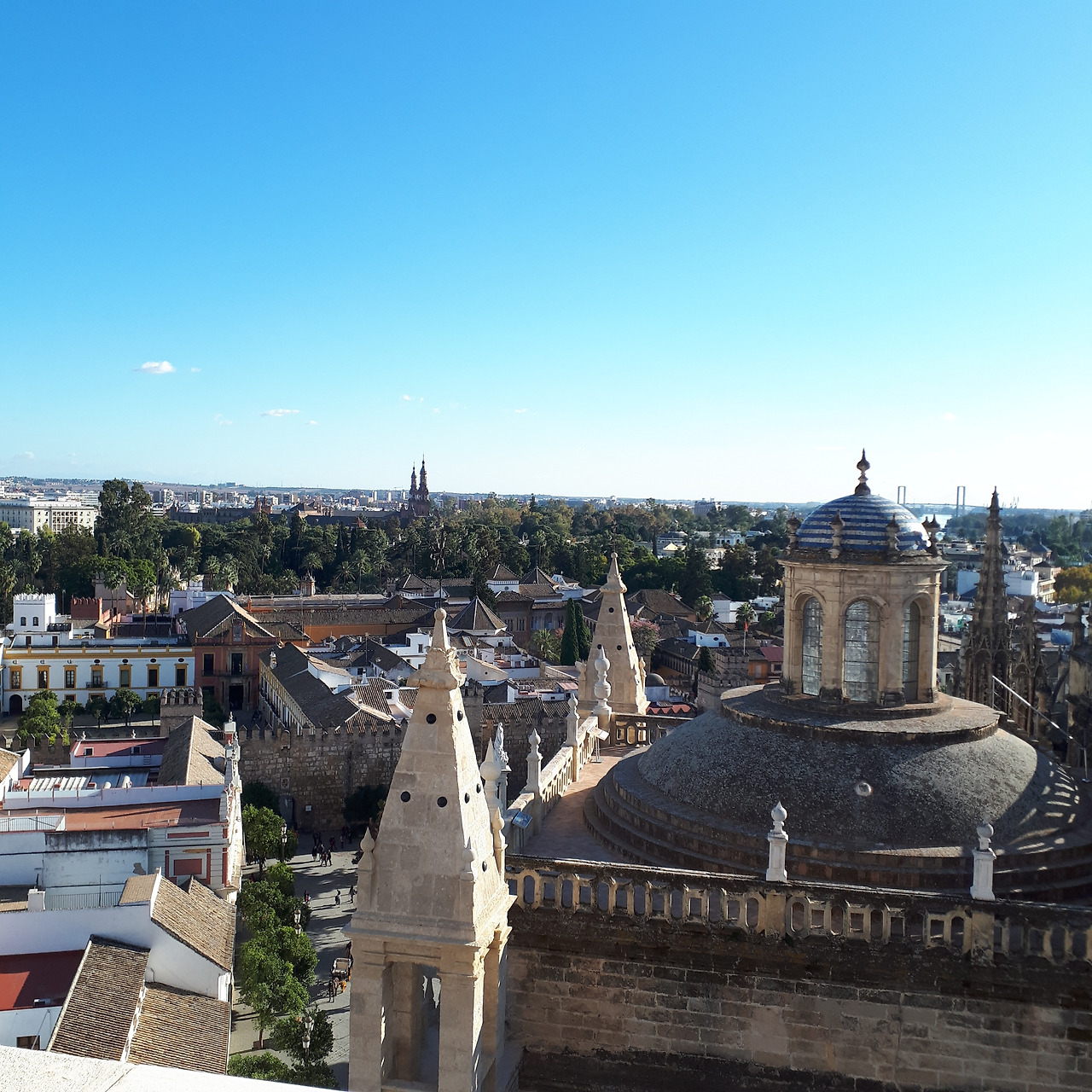 대성당과 연결된 히랄다 탑에 올라가면 세비야 전경을 바라볼 수 있다. 좁디 좁은 계단의 연속이었던 피렌체 대성당의 조토의 종탑과는 다르게 세비야 대성당의 히랄다 탑은 완만한 경사로로 되어 있어서 올라가는데 수월하다. 천천히 오랜 시간동안 걸어 올라간다고 생각하면 어느새 세비야의 전경을 바라볼 수 있는 정상에 도착하게 된다. 히랄다 탑에서 세비야의 광경을 바라본다면 황금빛 태양이 작렬하는 황금의 도시를 눈에 담을 수 있다.