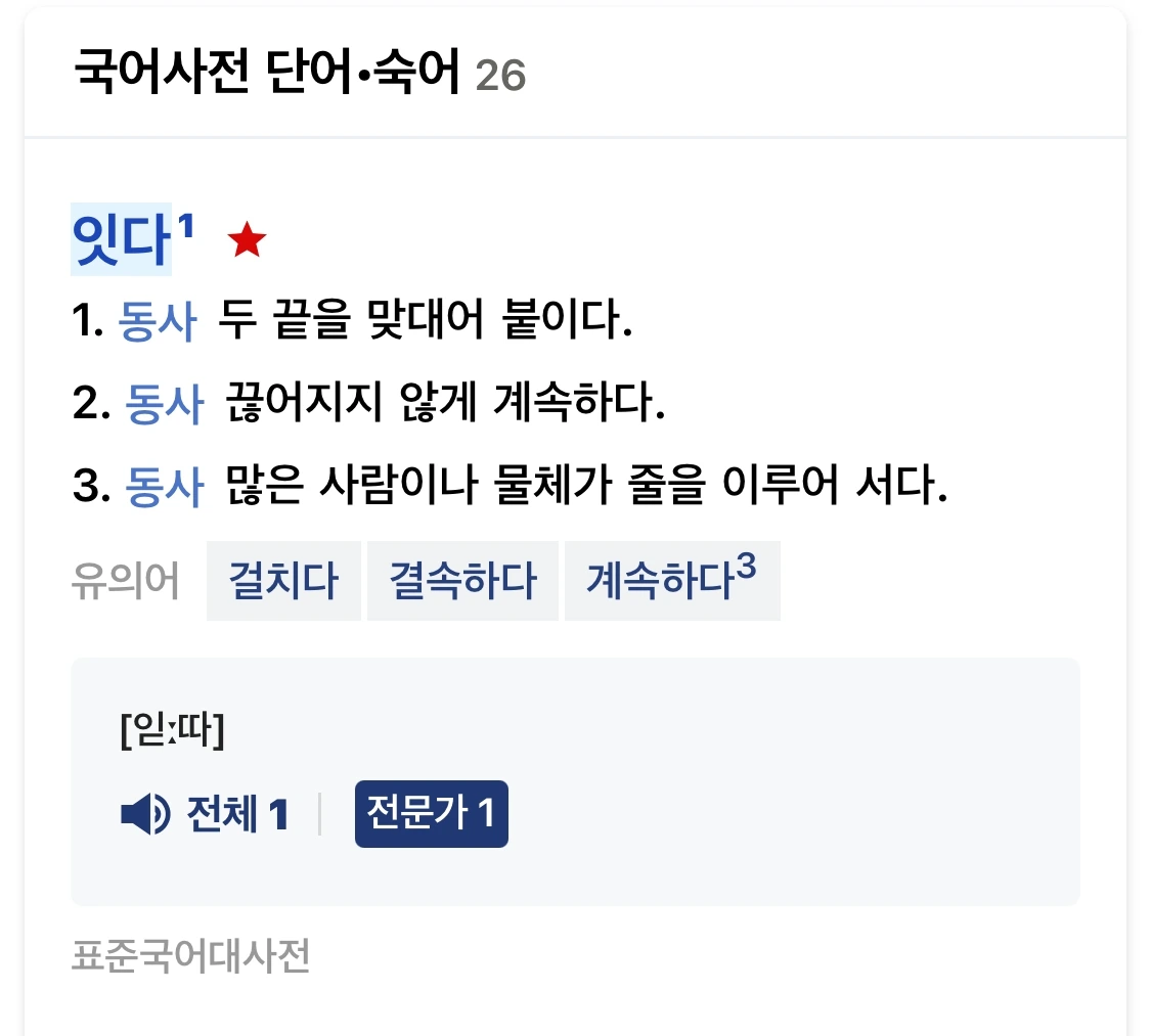 사전에서 ‘잇다’를 찾아보면