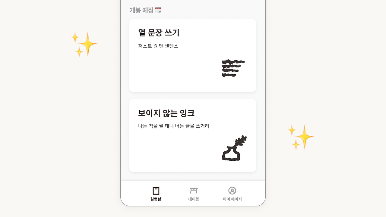 안드레스: 우리는 새로운 방식으로 글을 쓰고 읽는 공간을 만들고 싶었어요. 누구나 표현 방식을 각양각색으로 실험할 수 있는 재밌는 환경이길 바랐습니다. 그래서 이름을 '글감 실험실'이라고 지었어요. 엉성하고, 평소와는 다른, 실험적인 모습을 보여줄 수 있도록요. '실험실'은 여러 '실험'이 진행되는 곳이에요. 각 실험은 특별한 글쓰기 경험을 제공하죠.