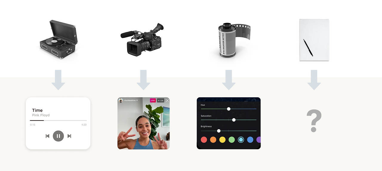 안드레스: 동의합니다. 새로운 도구에 대한 상상은 흥미로운 가능성을 불러일으키죠. 도구의 혁신은 줄곧 인류를 성장시켜왔어요. 석기시대의 간단한 도구들부터 핸드폰으로 인스타그램에 5초짜리 스토리를 올리는 것의 차이만 봐도 그렇죠. "어떻게"는 언제나 "무엇을"에게 영감을 줍니다. 저에게 새롭게 다가온 글 쓰는 방법은 손가락 대신 목소리를 이용하는 거예요. 텍스트 대신 음성을 이용해 쓰는 글은 어떻게 다를까요? 내가 평소에는 쓰지 않았을 법한 내용을 말하게 될까요?