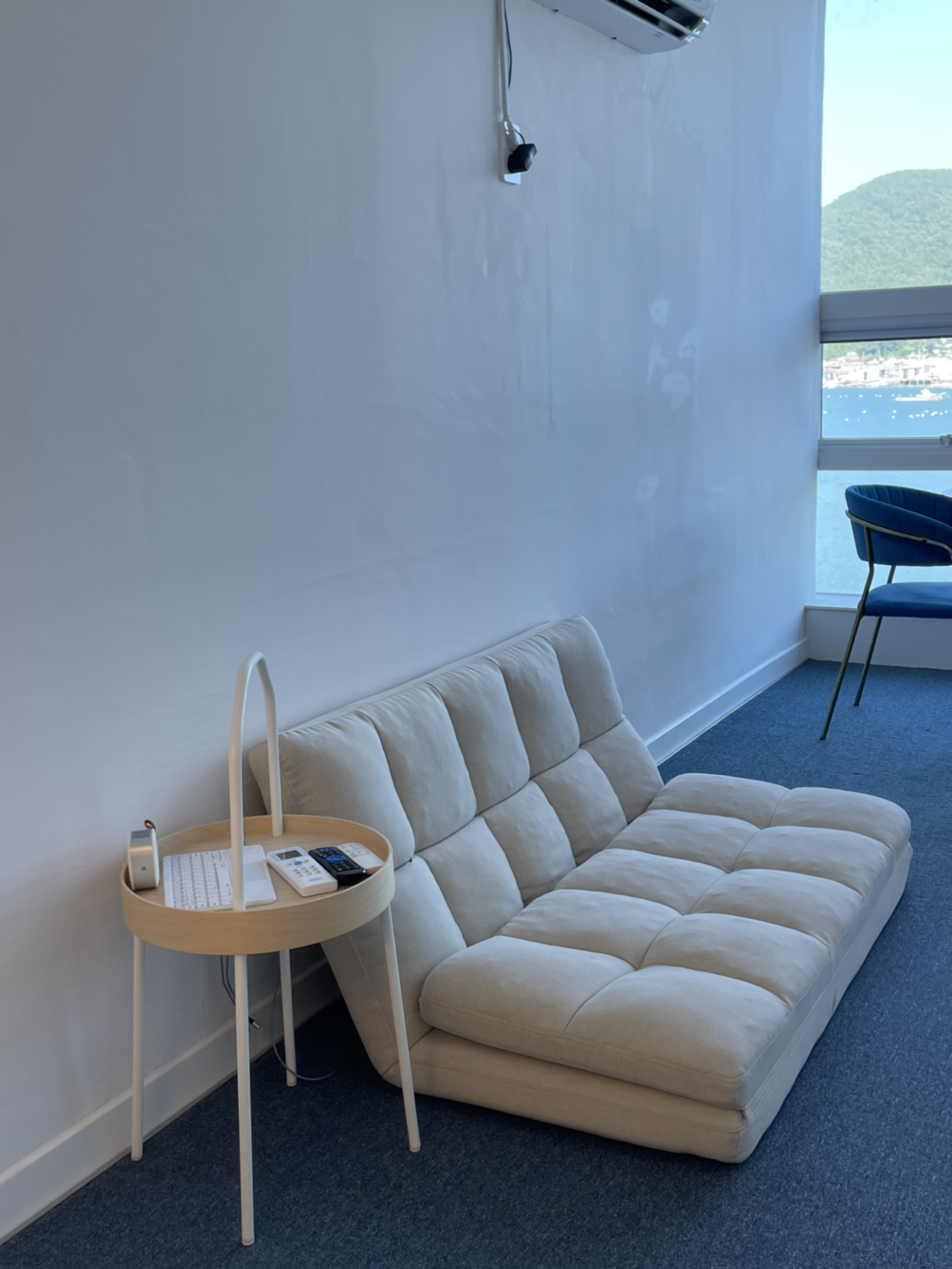 바다가 보이는 집의 조건 중 하나는 큰 창문이었다. 큰 창문에 바다가 가득 차있는 풍경을 좋아하기 때문이다. 한 군데는 창문 앞 침대가, 한 군데는 책상과 의자가 있었다. 바다를 바라보며 글을 쓰고 싶어서 책상과 의자가 있는 집을 선택했다.