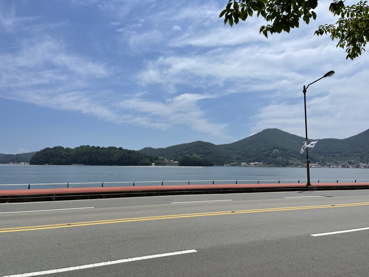 올해 3월, 통영에 도착해서 우연히 해안도로를 걸었다. 죽림 해안로는 충무도서관에서 죽림 신우희가로 아파트 앞 까지 약 1.9km 길이의 해안도로이다. 쭉 뻗어 있는 도로, 건너편에 보이는 산 아래 아기자기한 마을, 시원하게 파도를 가르는 배, 빛나는 물결 사이 윤슬. 마음이 말랑말랑해졌다.