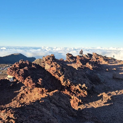 하와이까지 날아와서 화산위에 자리잡고 석양을 보니