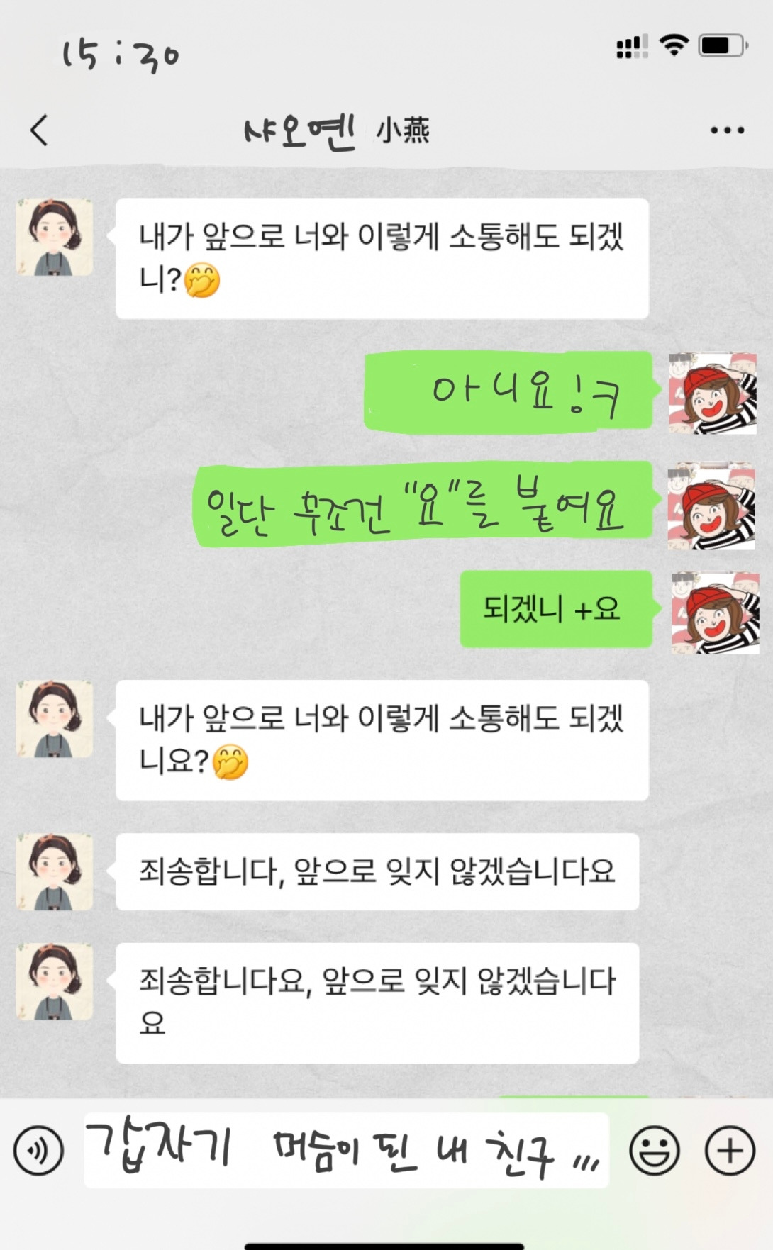 아, 평소 예의바른 친구라 급한대로 처방해준 임시방편 높임말이었는데 갑자기 머슴체가 되어버렸네.