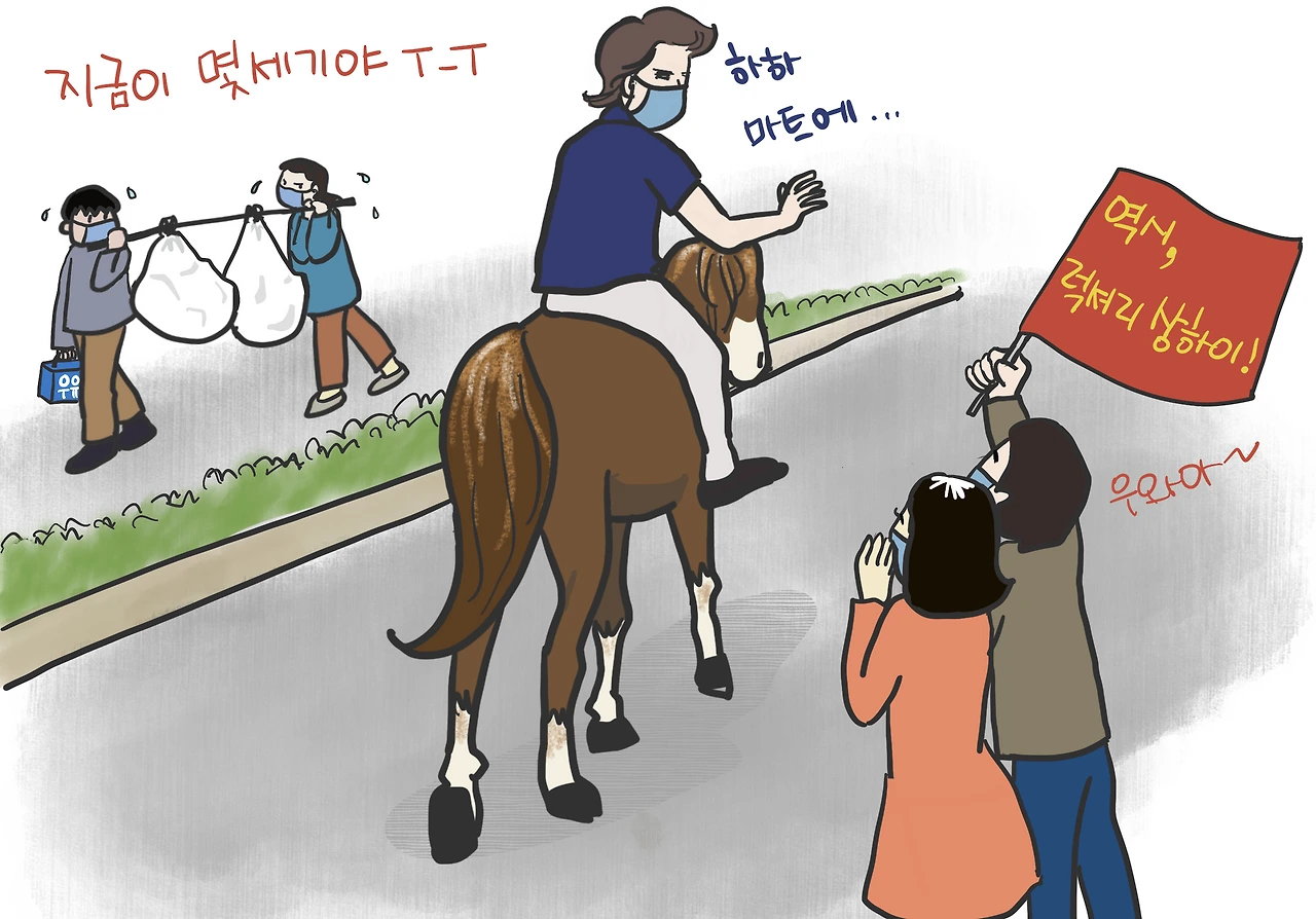 하지만 저런 웃픈 모습들이 곧 나의 모습이겠구 싶은 생각이 들었다. 어디서 소 달구지라도 구해온다면 틱톡 1위쯤은 충분히 할 수 있을 텐데 나는 카트라도 끌어줄 강아지 한 마리도 없다. 혹여 나가게 된다면 조선시대 아낙들 처럼 생필품들을 보따리에 동여매고 머리에 얹어 사뿐 사뿐 걸어와 볼까.