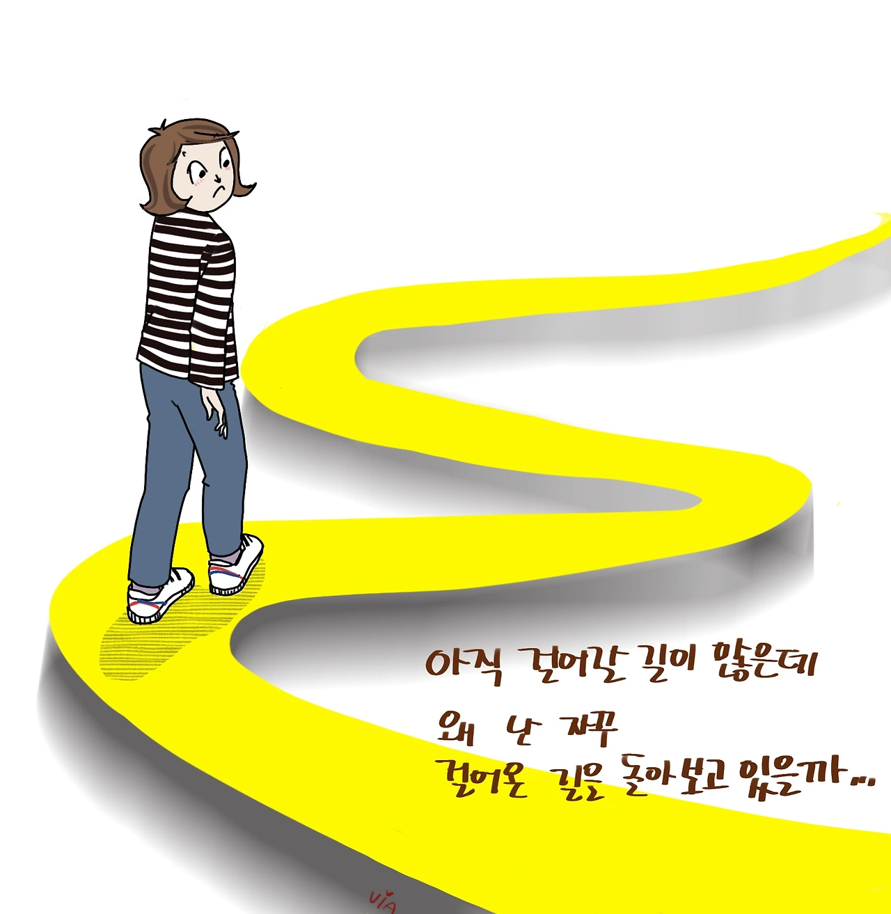 그나저나, 지금 내가 해야 할 일은 내가 선 이 길을 잘 다지고 튼튼히 벽돌을 놓는 일일 텐데. 왜 난 늘 지나온 길에 눈을 박아둔 채 길을 걸어가는 것일까. 그러니 똑바로 걷지 못하고 흔들릴 수밖에.