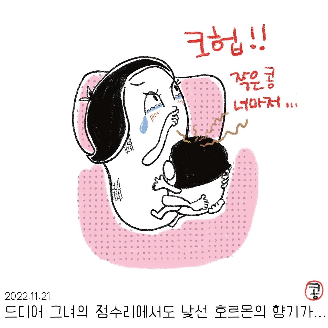 늦은 밤, 잠든 아이를 꼭 끌어안고 궁디를 팡팡 두드릴 때