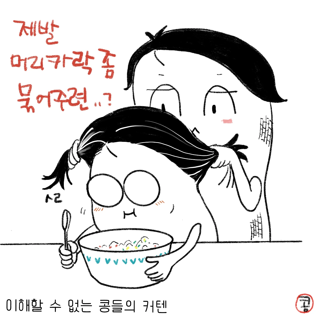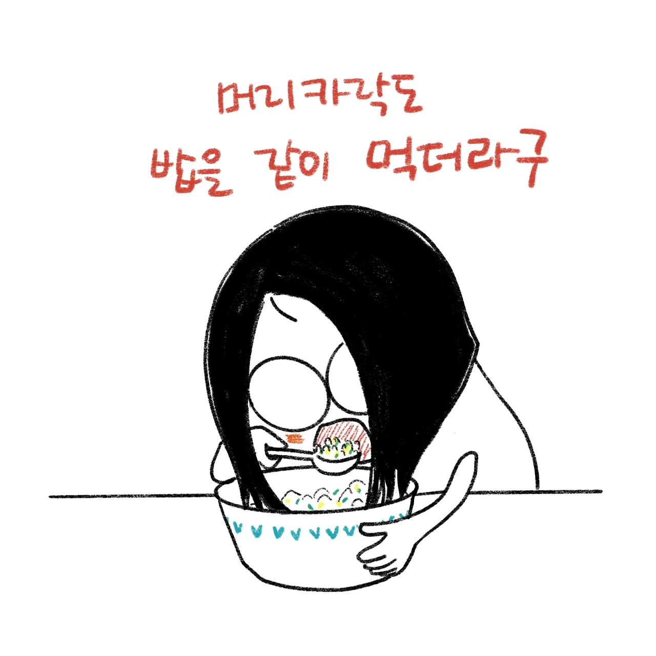 머리카락과 함께 사이좋게 나눠먹는 국, 밥, 국수