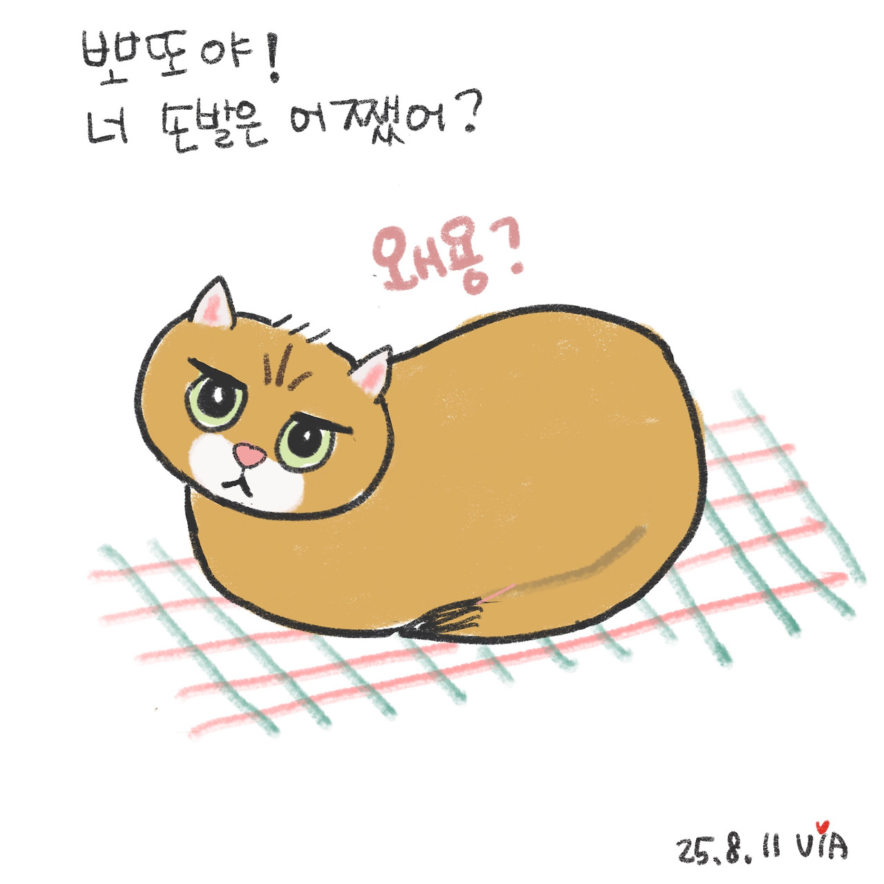 그런데 막상 우리집에 들어온 고양이 뽀또는 나에게 애교를 부리거나 내 꽁무니를 좇아다니지도 않고 너 따위 집사 없어도 잘 살수 있다는 듯 독립심이 높은 도도냥이었어요. 내 손길을 바라기는 커녕, 내가 안을라 치면 어찌나 빠르게 도망을 가는지. 하지만 우리 다 알고 있지요, 뽀또는 집사의 도움이 없으면 살 수 없다는 거.