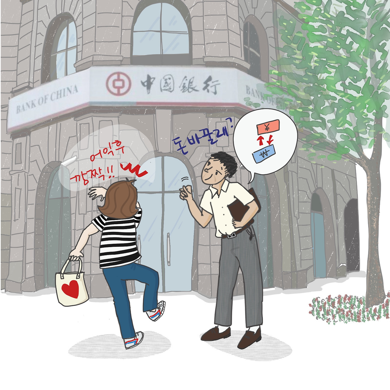 은행 앞에서 늘 두툼한 일수 가방을 옆구리에 끼고 "한삐, 한삐 韩币(한국돈)"을 속삭이시던 불법 환전 아저씨도