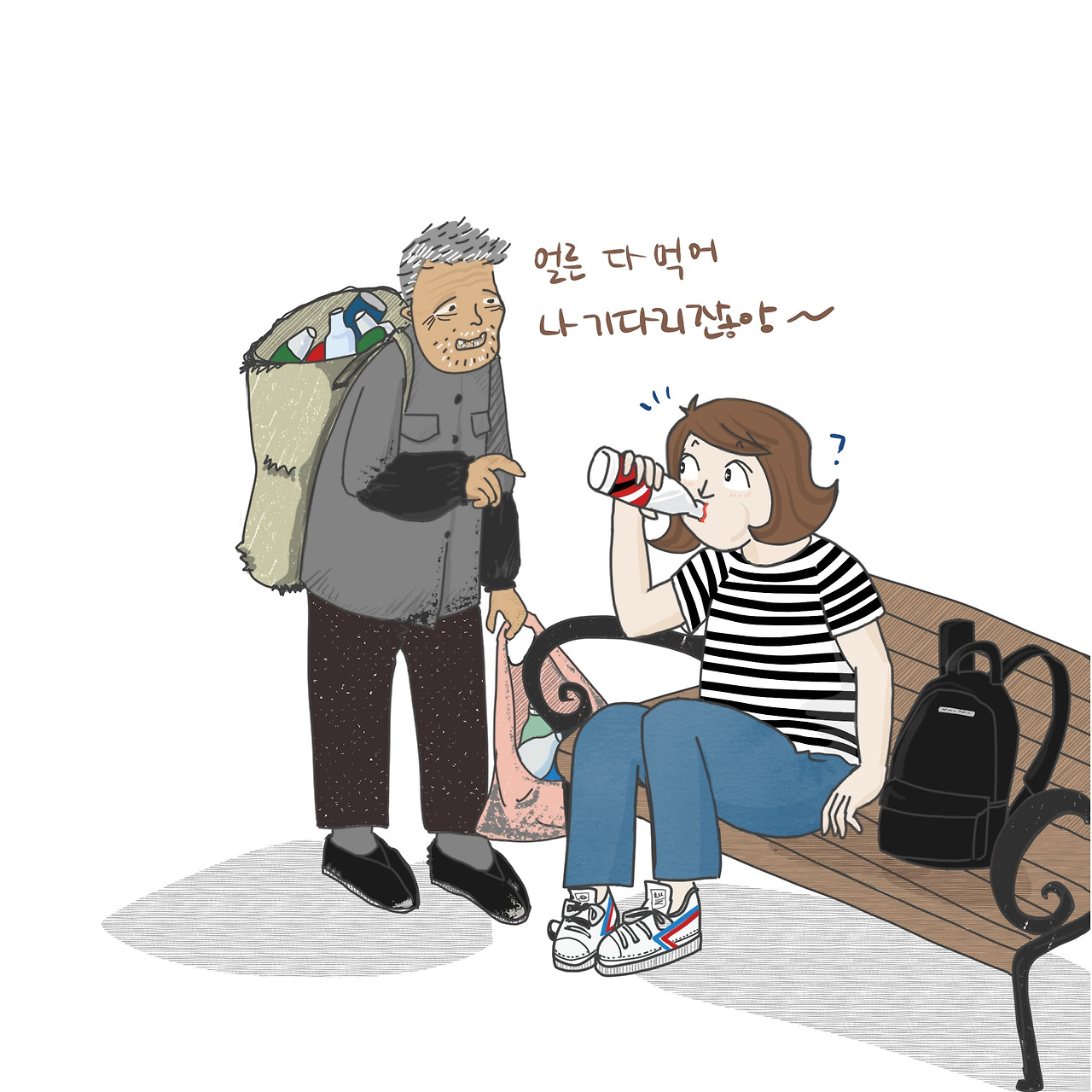 길거리에서 물병을 줍던, 혹은 물 마시는 사람 옆에서 곧 비어질 물병을 기다리시던 할머니 할아버지들은 점점 사라지고