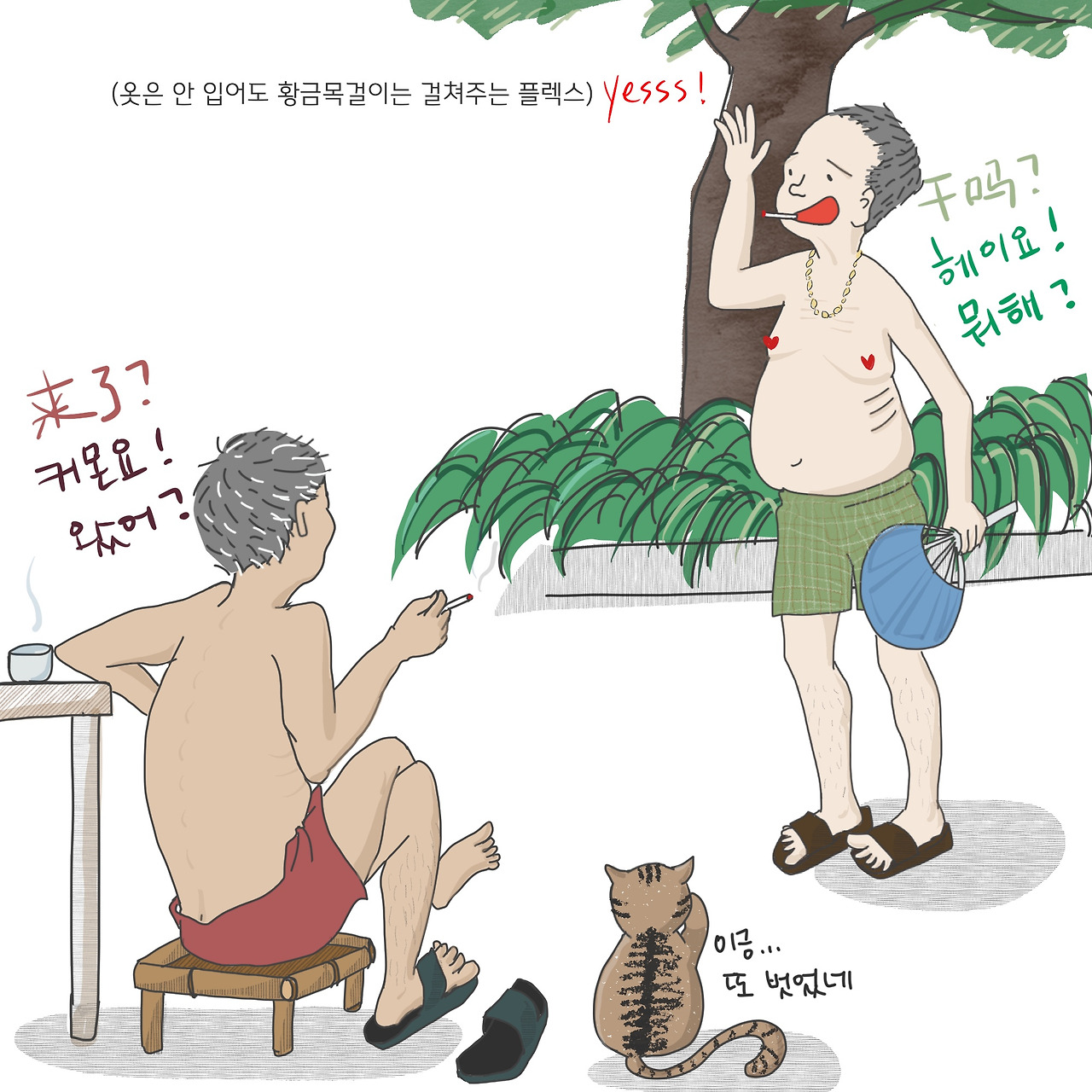 뽀오얀 피부와 풍선 같은 배를 뽐내시며 헐벗은 채 동네를 활보하시던 아저씨들은 이제 뵙기 힘들지만