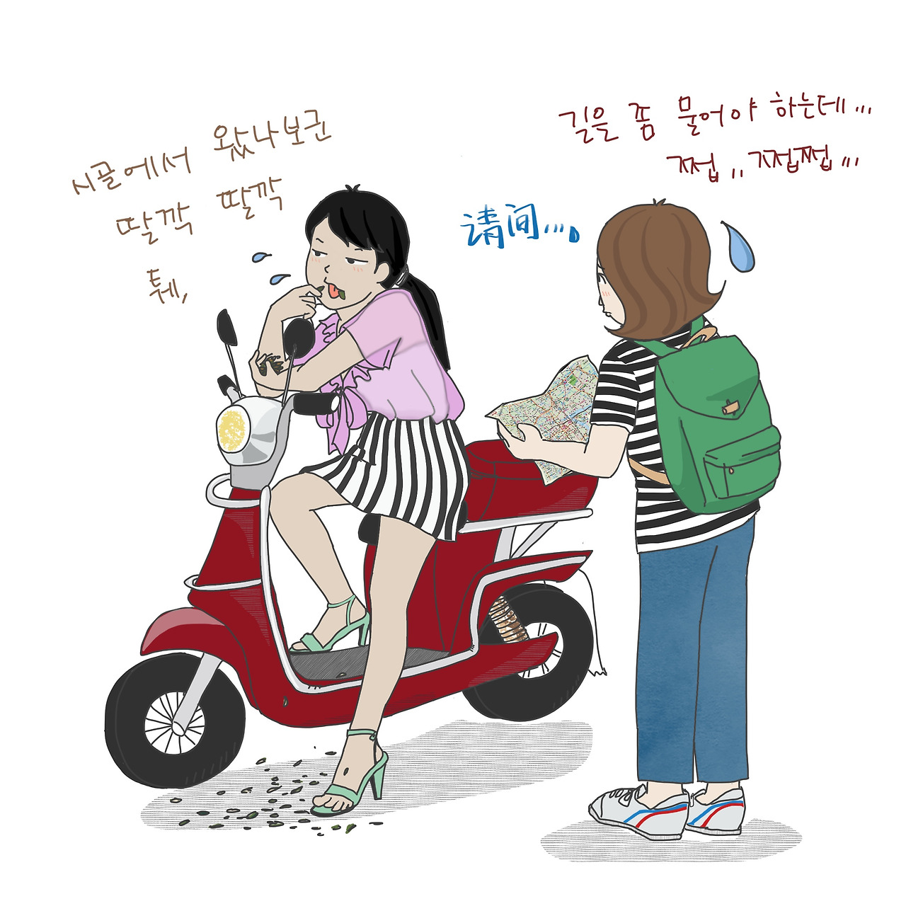 짧은 스커트를 입고 무섭게 전동차를 몰아 대며 딸깍 딸깍 해바라기 씨를 까대던 상해 언니들이 아직도 생생하네요.